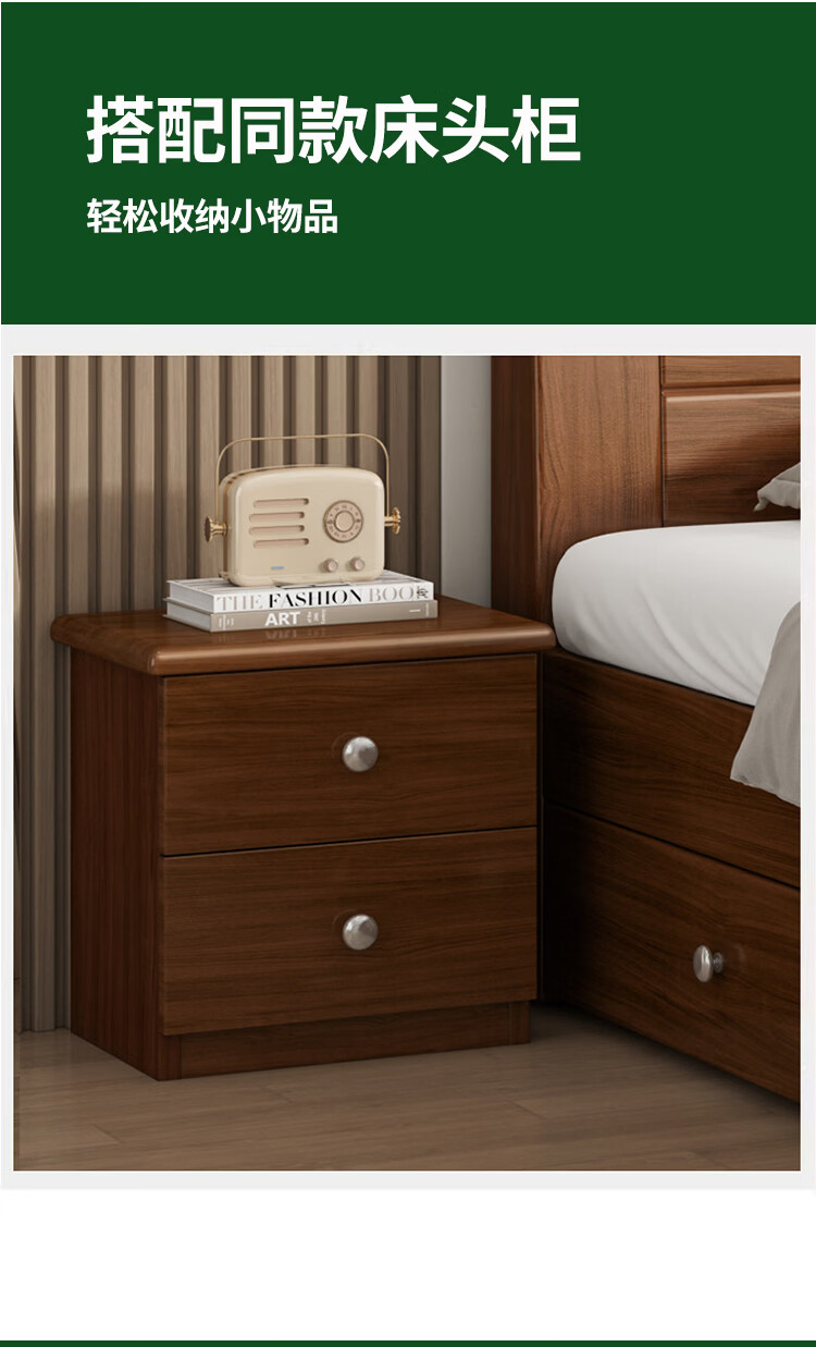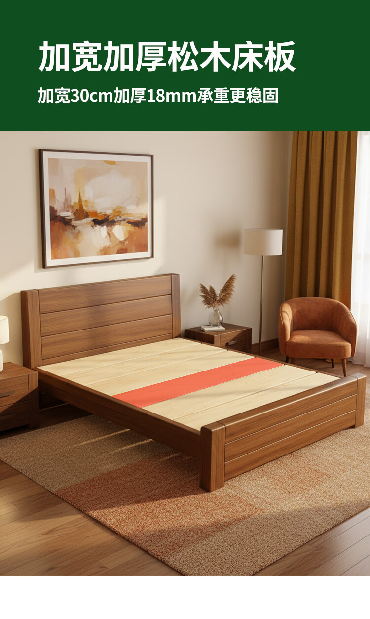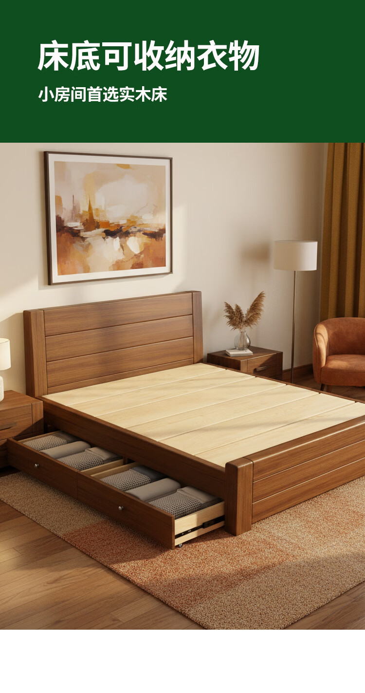 科虎床实木床主卧1.8米x2米双人床1.5米x2米单人床 胡桃色实木床【双抽】 120*200cm