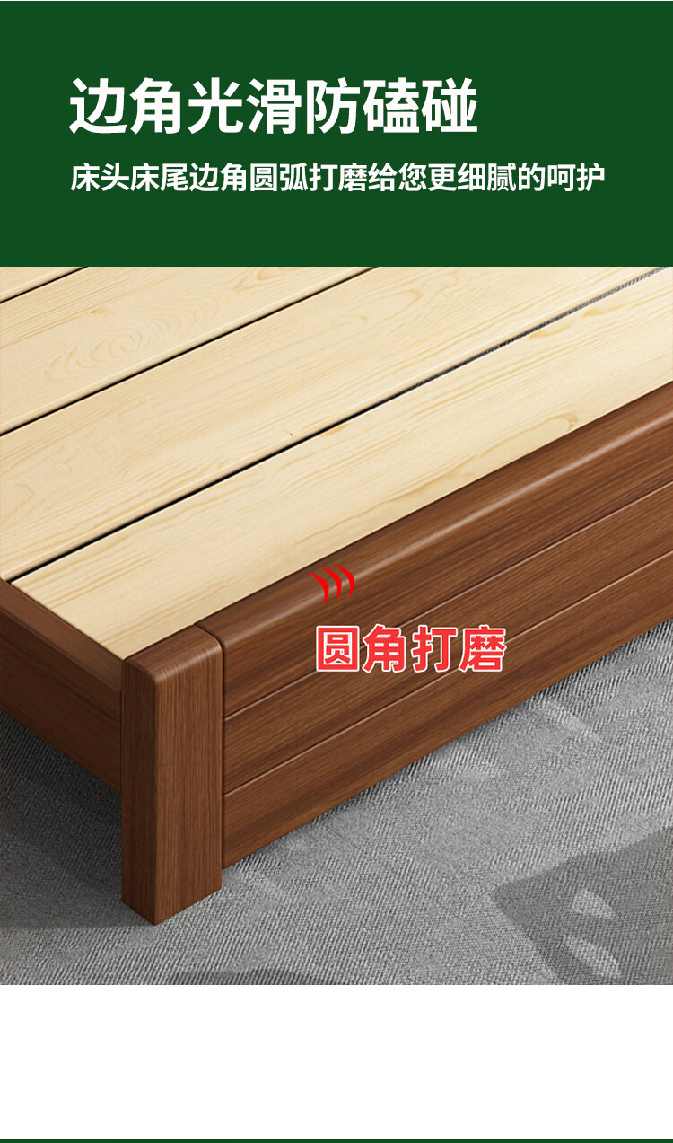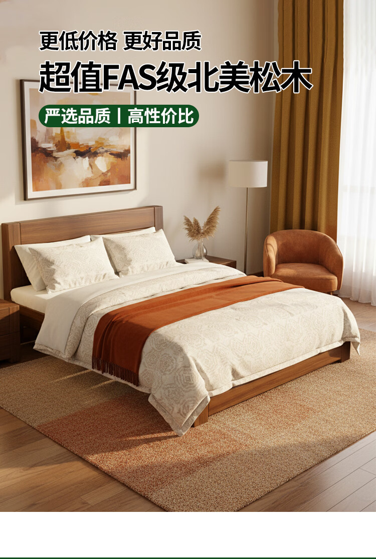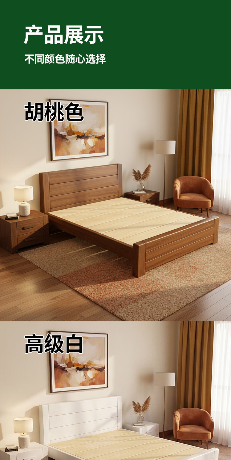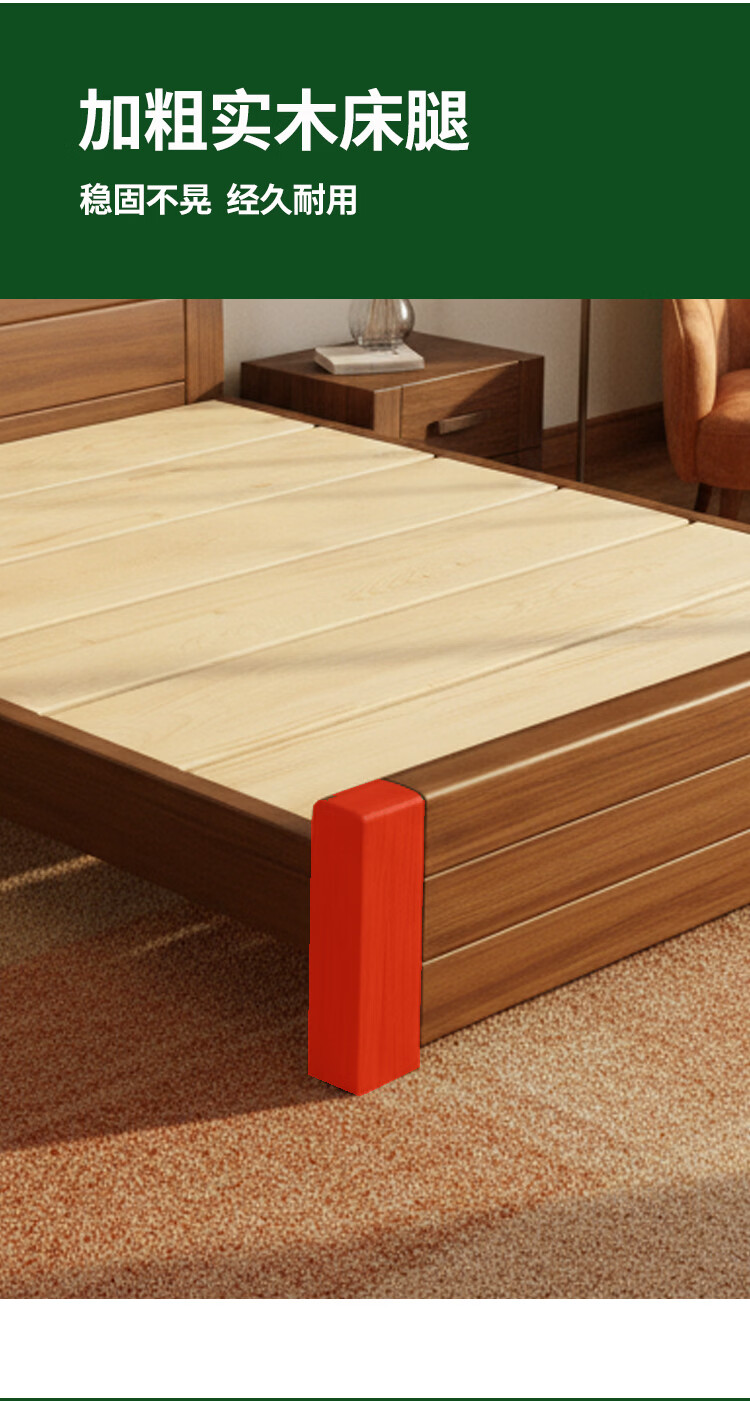 科虎床实木床主卧1.8米x2米双人床1.5米x2米单人床 胡桃色实木床【双抽】 120*200cm