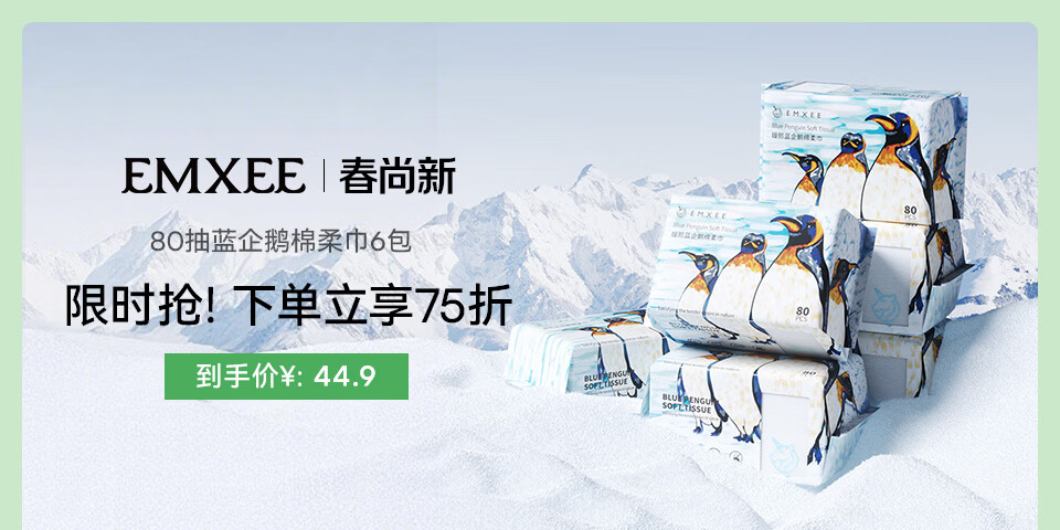 今日:高洁丝任选5件 至高300片 到手36.4元
