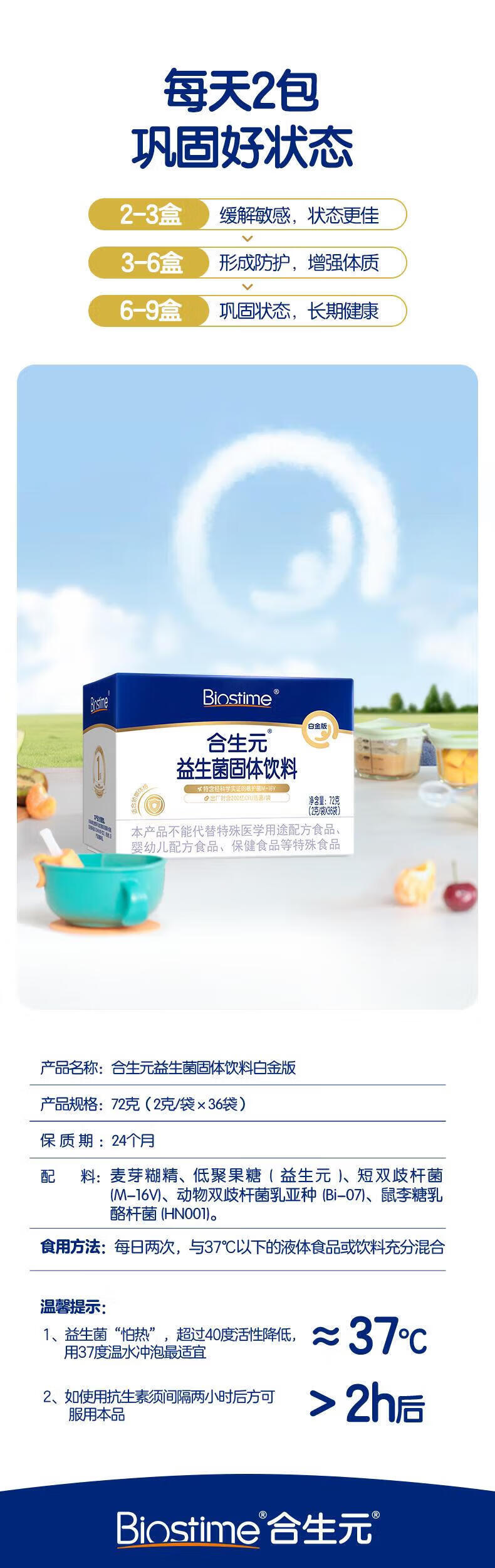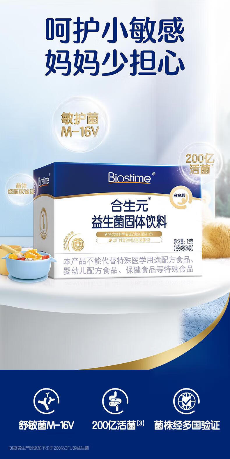 合生元白金版益生菌儿童 m16v舒敏益生菌 敏敏救星200亿活菌36袋 白金版 36袋*1盒 【改善敏感】