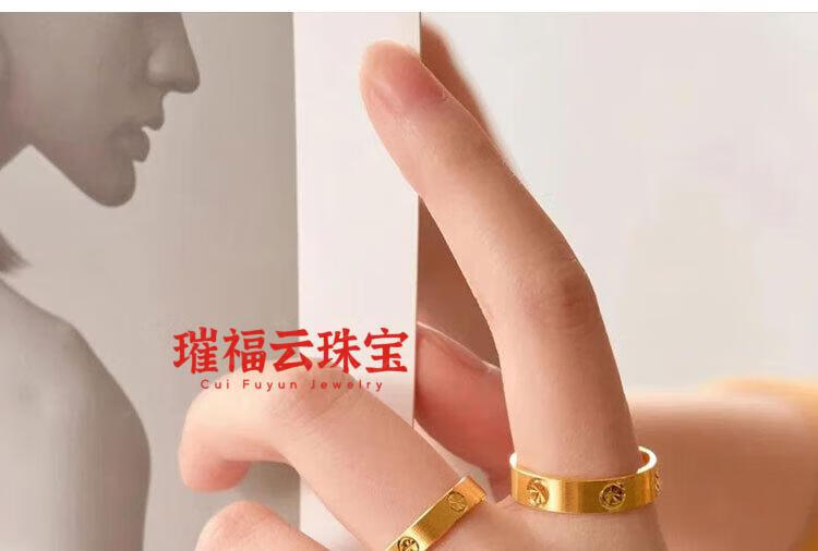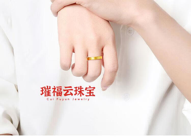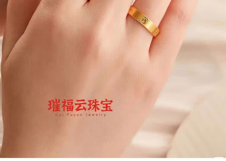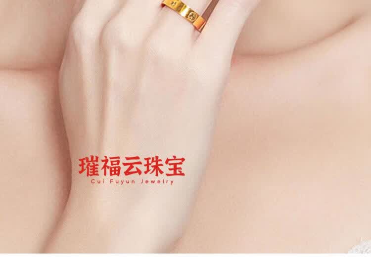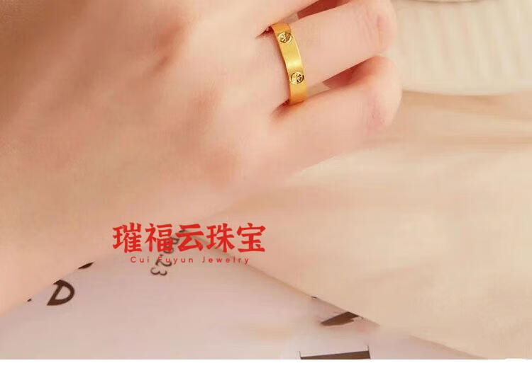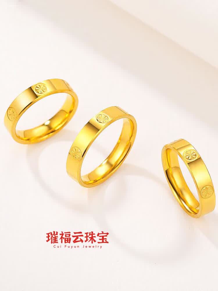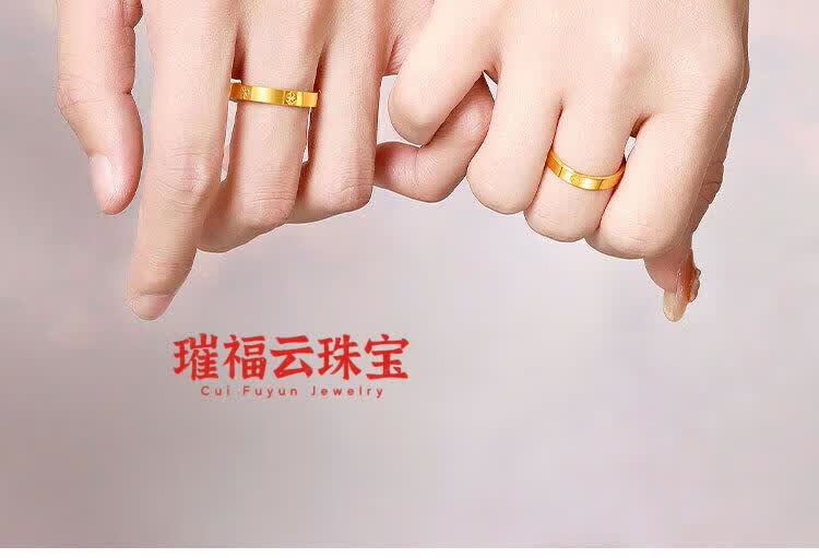 越南沙金戒指色素圈18k米黄字情侣男女对戒520 米字戒指 10号