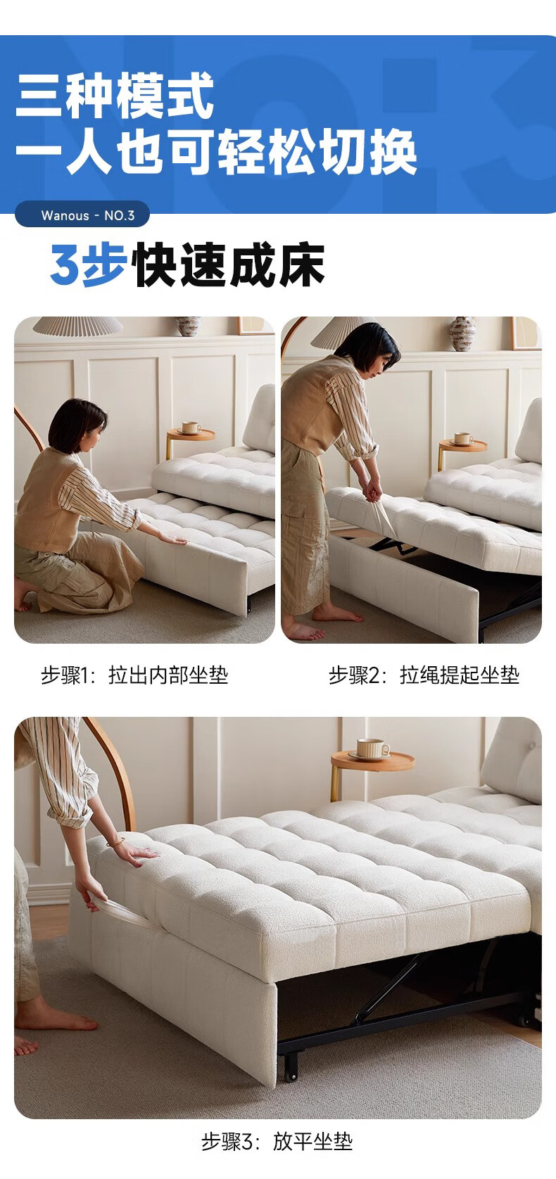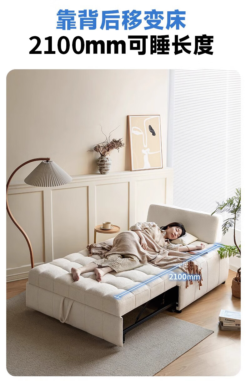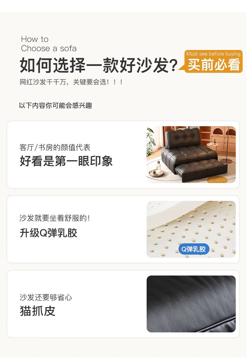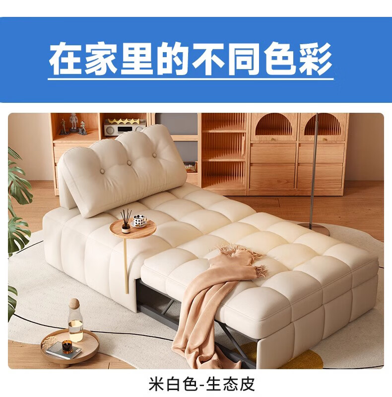 鼎禾泡芙折叠沙发床单双人两用2026新款小户型客厅休闲坐卧伸缩床 【米白色】1.2米沙发床 猫抓皮【顺丰送货上门】