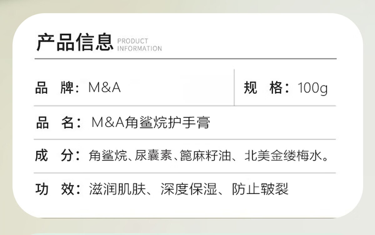 M&A护手霜滋润保湿防干裂补水嫩白轻薄不油腻擦手油滋润秋冬防裂粗糙 护手霜50g*2瓶