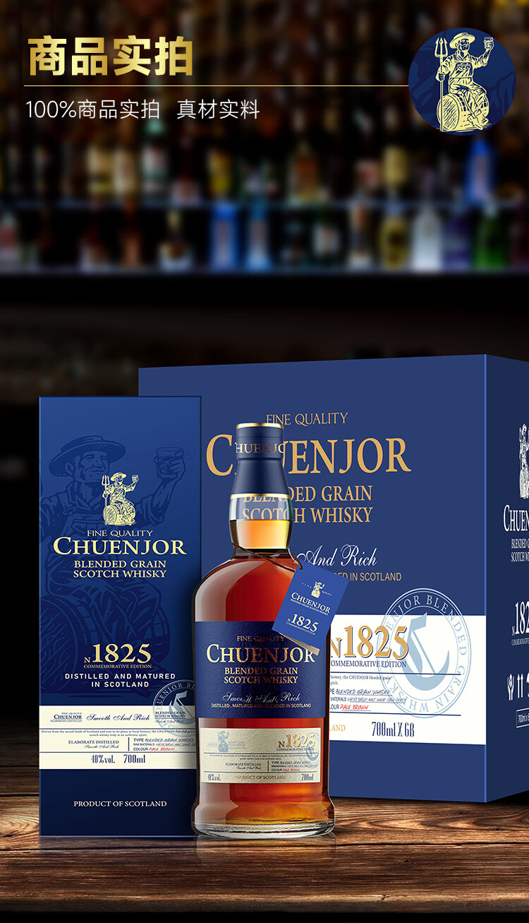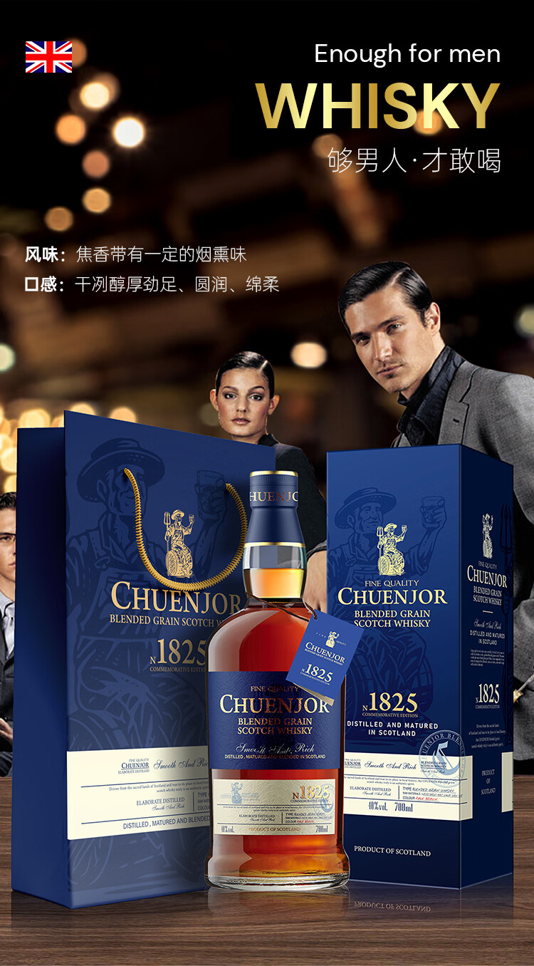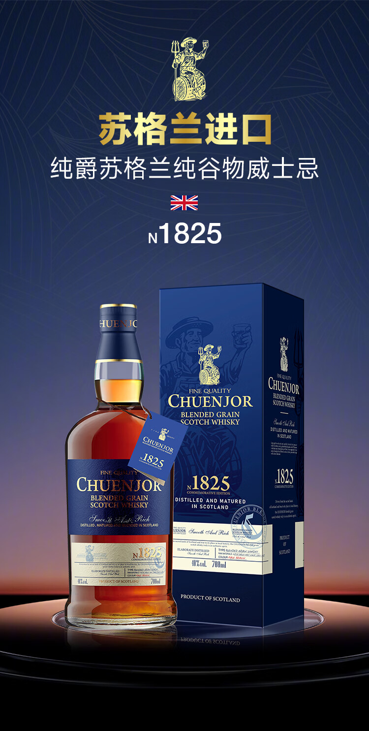 纯爵 CHUENJOR英国原瓶进口调和谷物威士忌40度洋酒纯爵1825威士忌酒700ml40度 【买3送4】纯爵1825威士忌【送同款1瓶+礼袋】