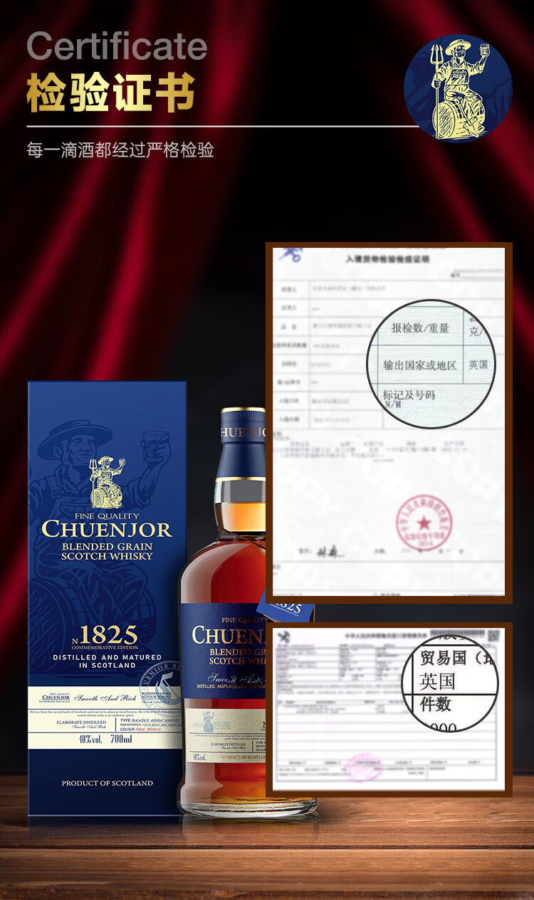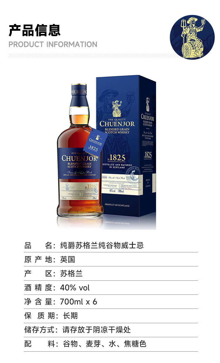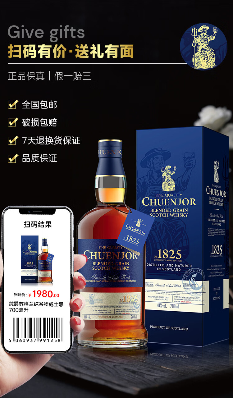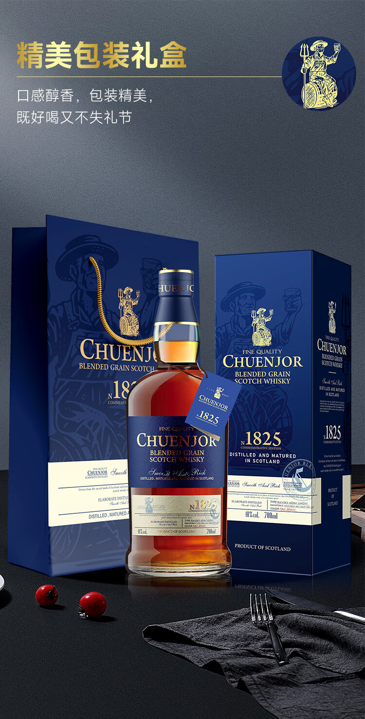 纯爵 CHUENJOR英国原瓶进口调和谷物威士忌40度洋酒纯爵1825威士忌酒700ml40度 【买3送4】纯爵1825威士忌【送同款1瓶+礼袋】