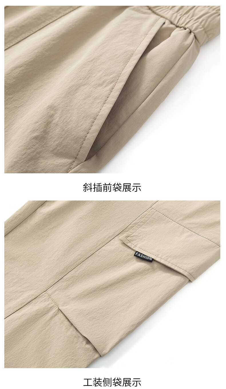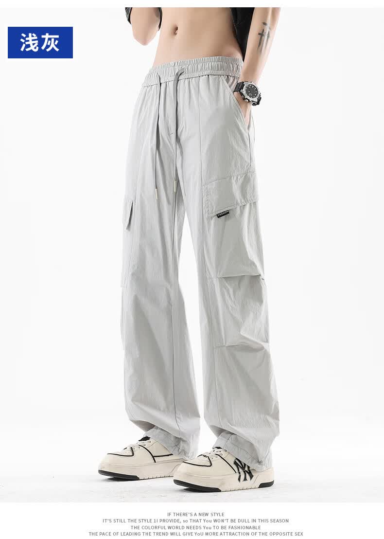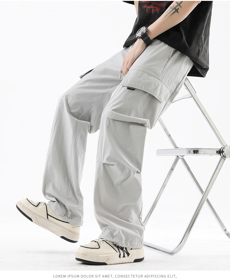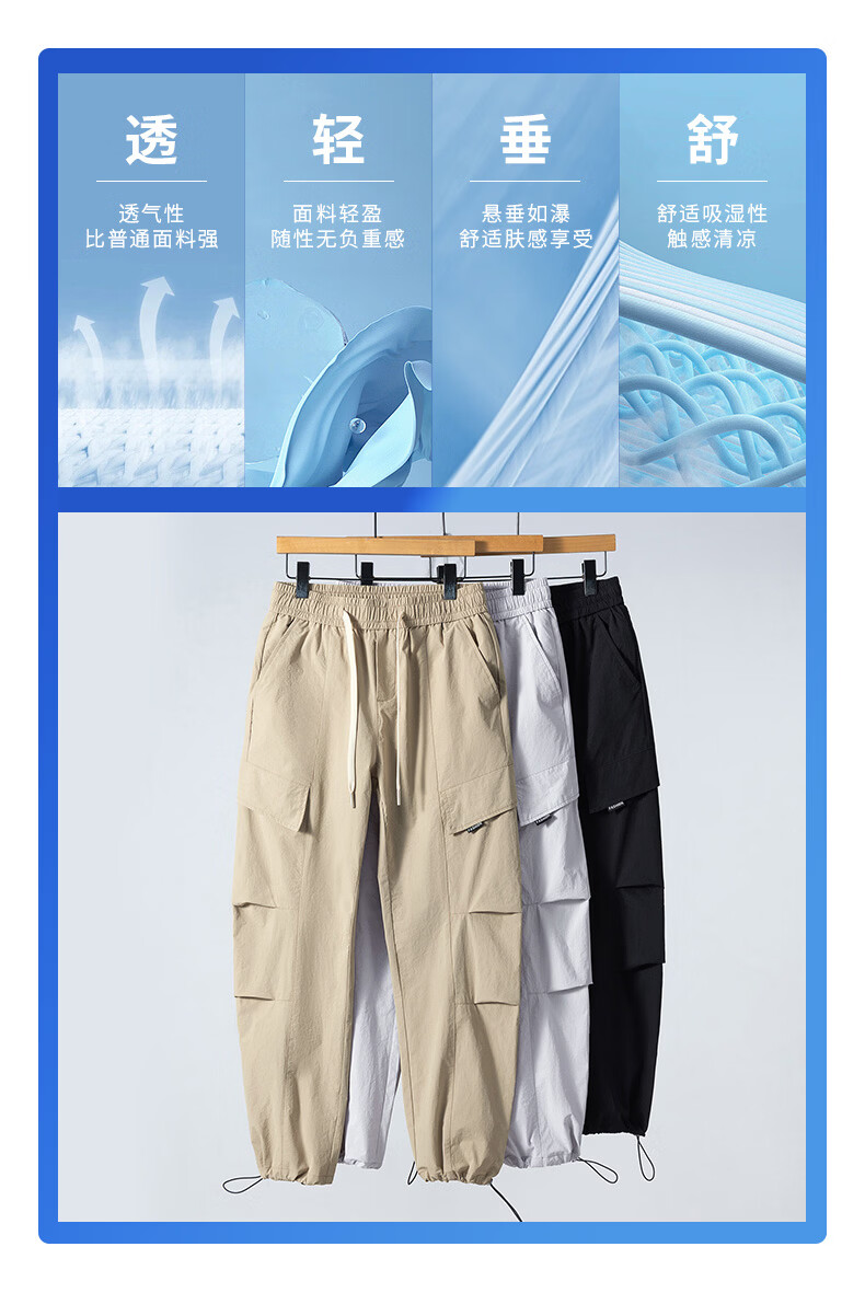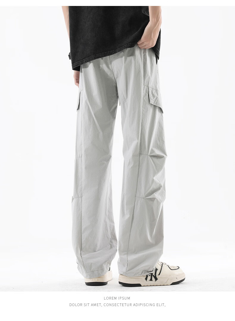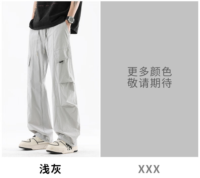 真维斯夏季薄款冰丝工装裤男士2025新款美式宽松休闲裤 浅灰 M
