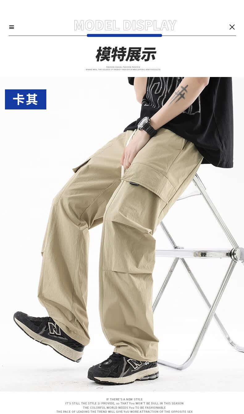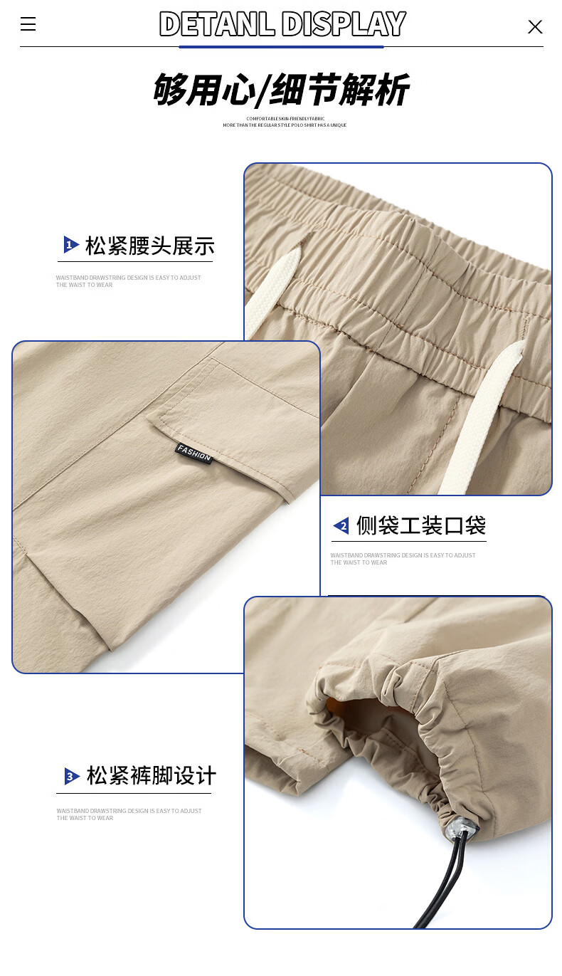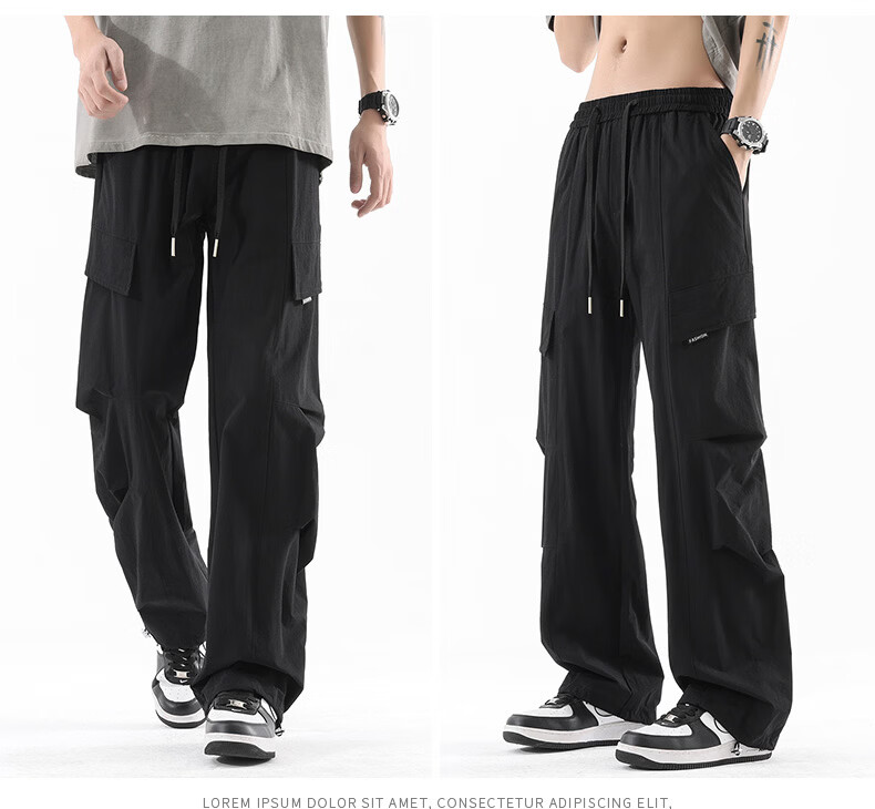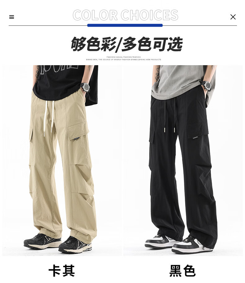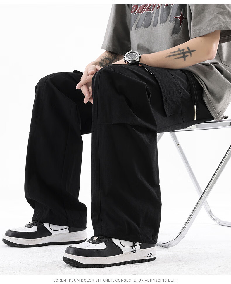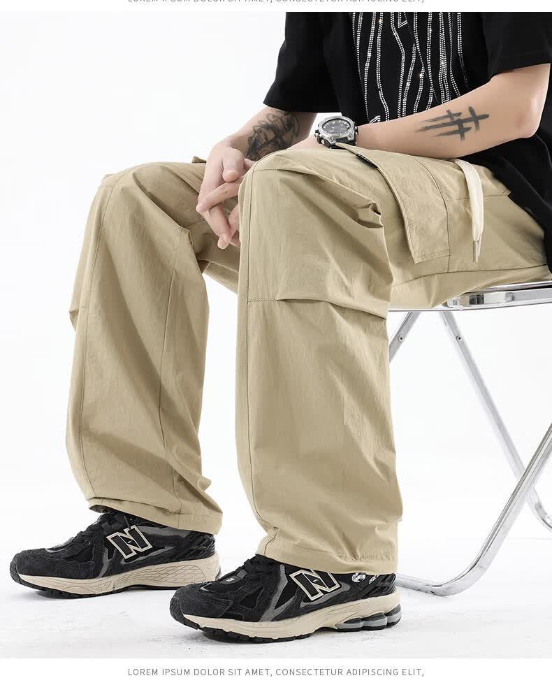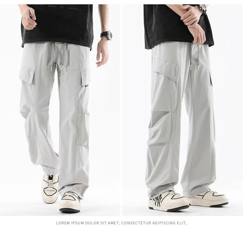 真维斯夏季薄款冰丝工装裤男士2025新款美式宽松休闲裤 浅灰 M