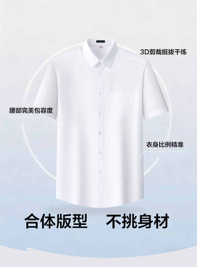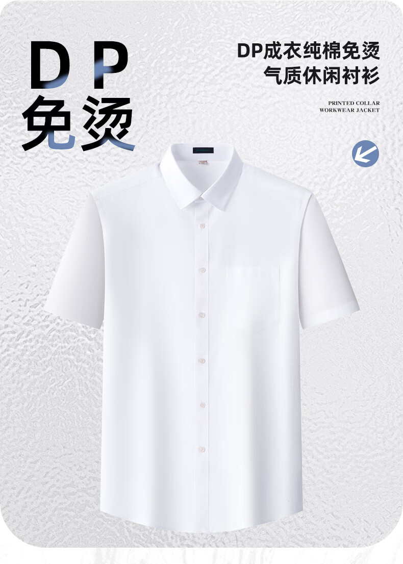 SHANSHAN杉杉【纯棉免烫修身】短袖衬衫男上班休闲日常百搭夏季新款 白色 38 /165/84A