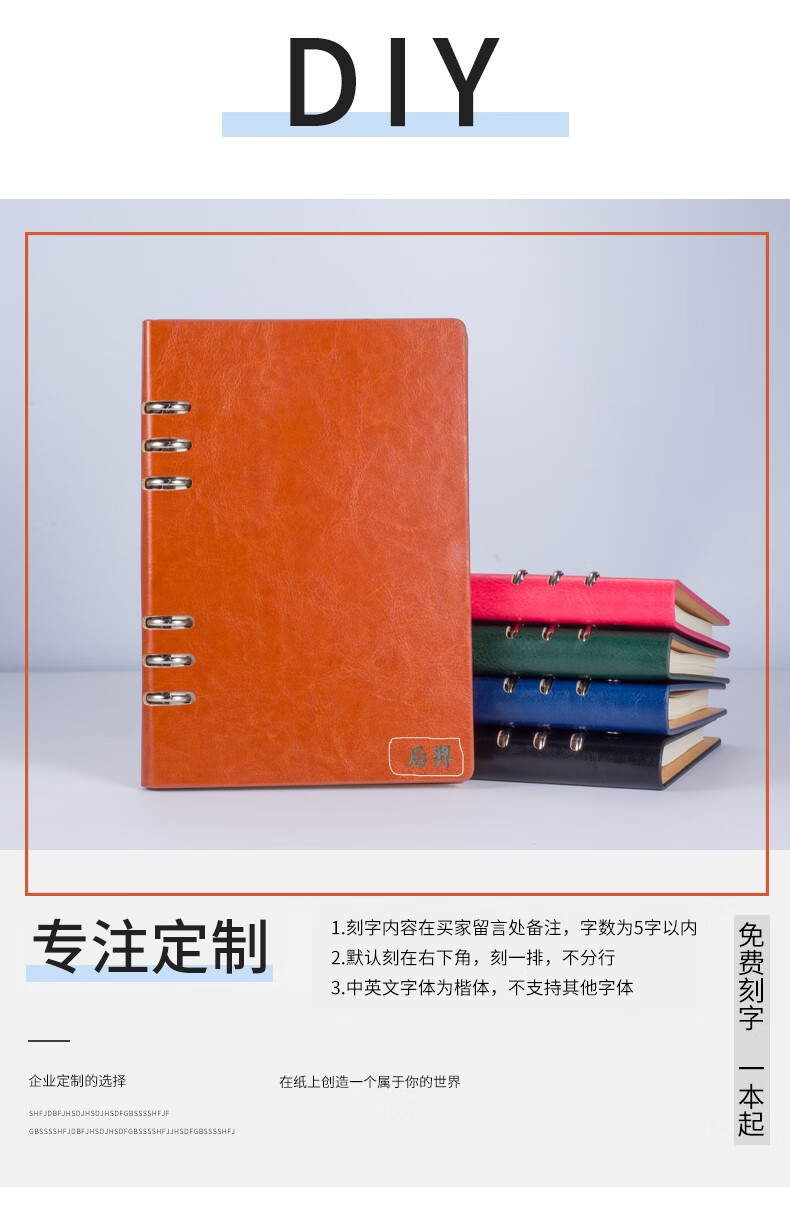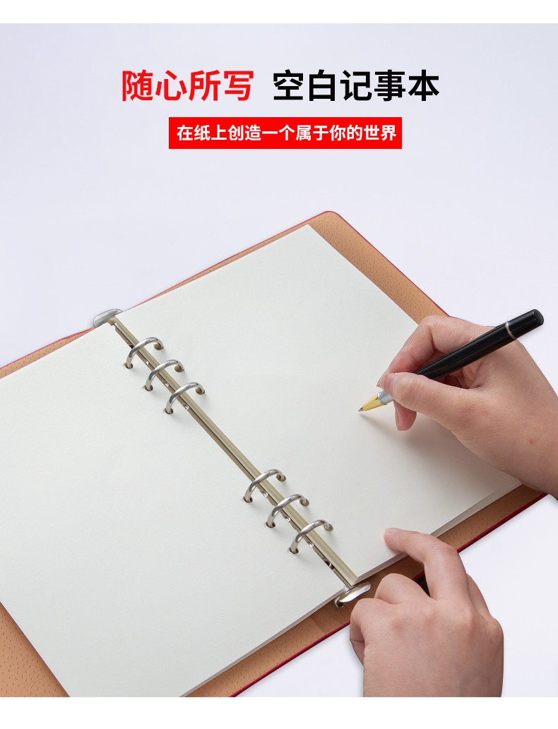 九千年 空白纸活页本活页夹无横线a5b5本子简约活页笔记本可拆卸大学生记事本商务定制logo A4 大红