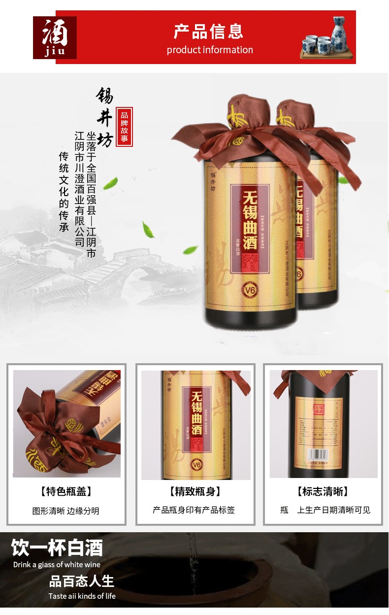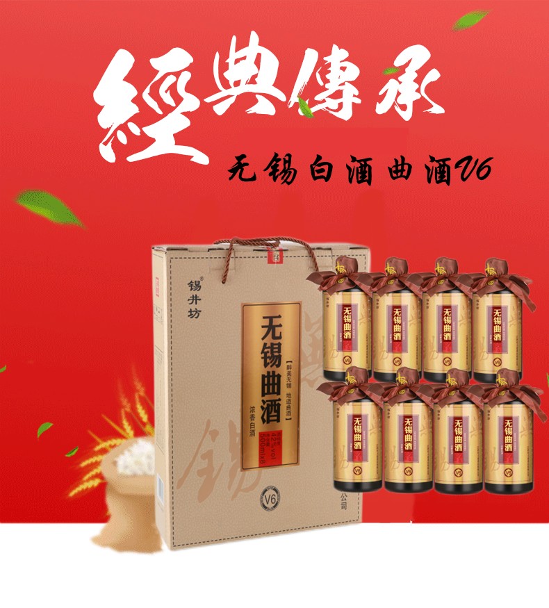 锡井坊无锡白酒浓香醉美无锡地道曲酒V6 八瓶带礼盒