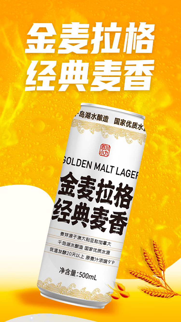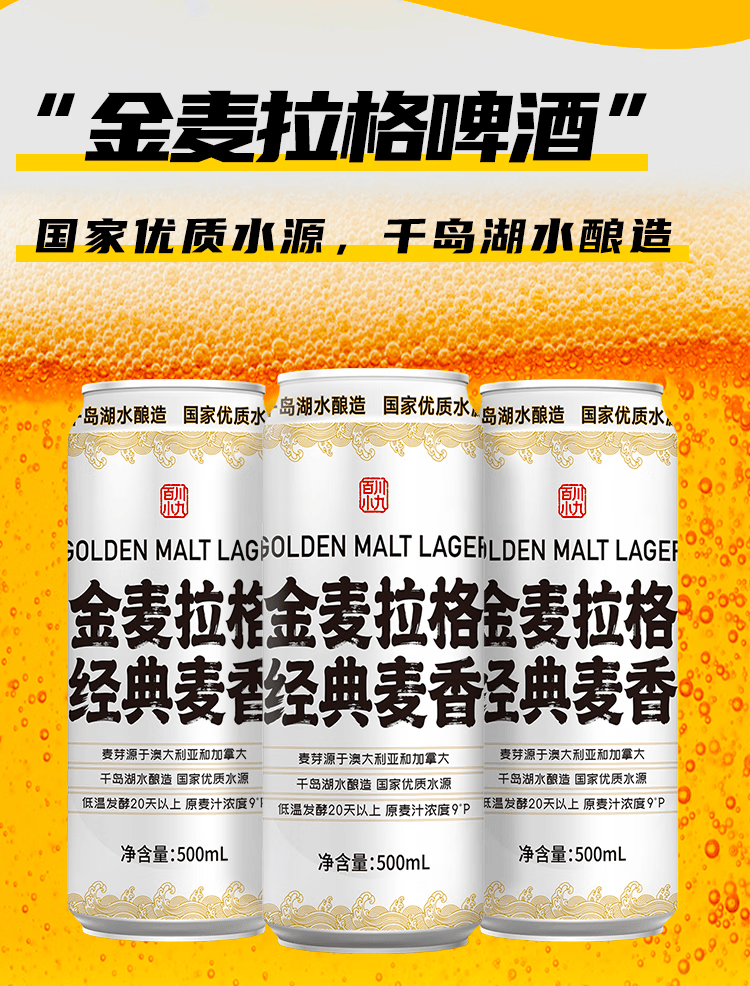 千島湖啤酒(CHEERDAY)金麦拉格 9°P 500ml*12瓶 整箱装 500mL 12瓶 整箱装