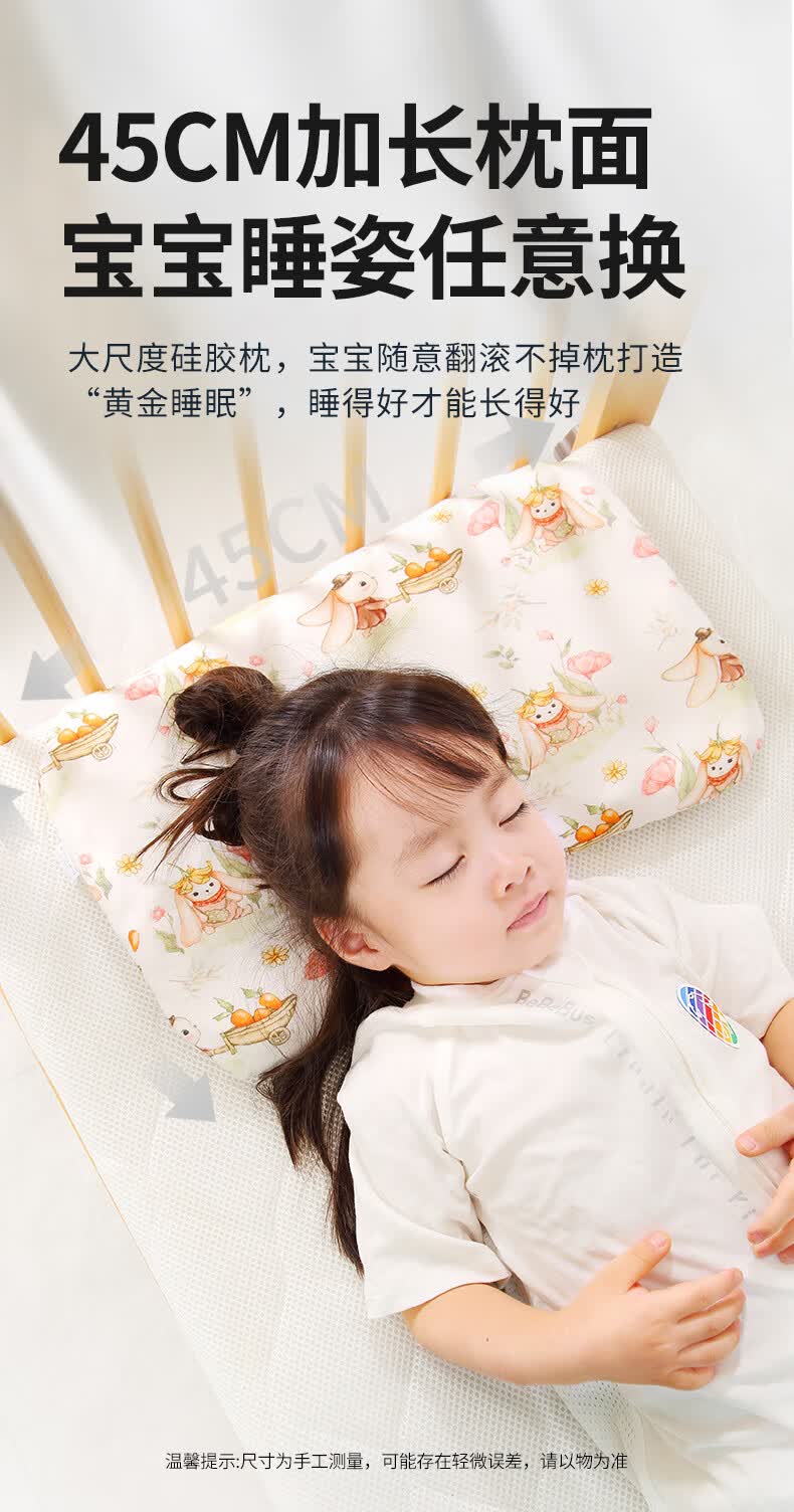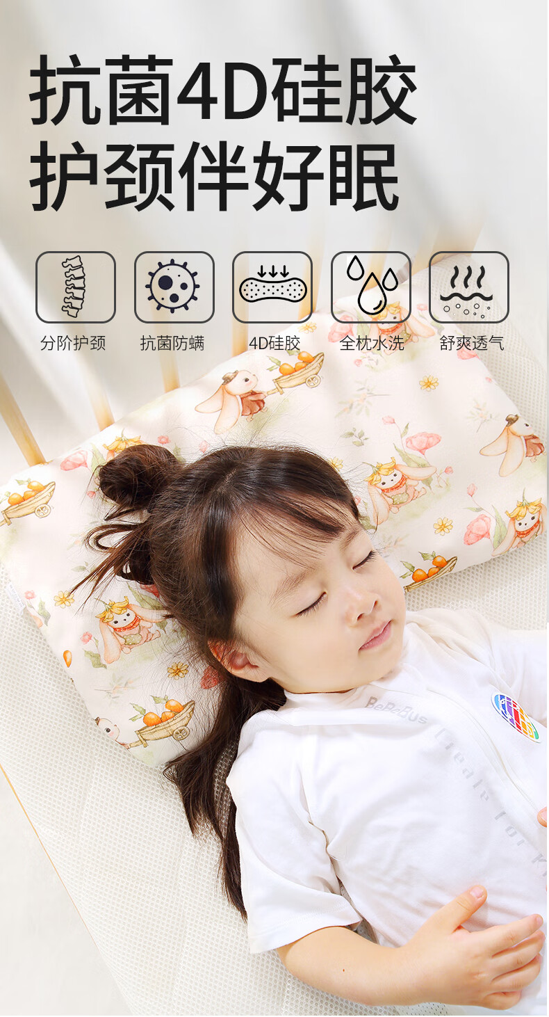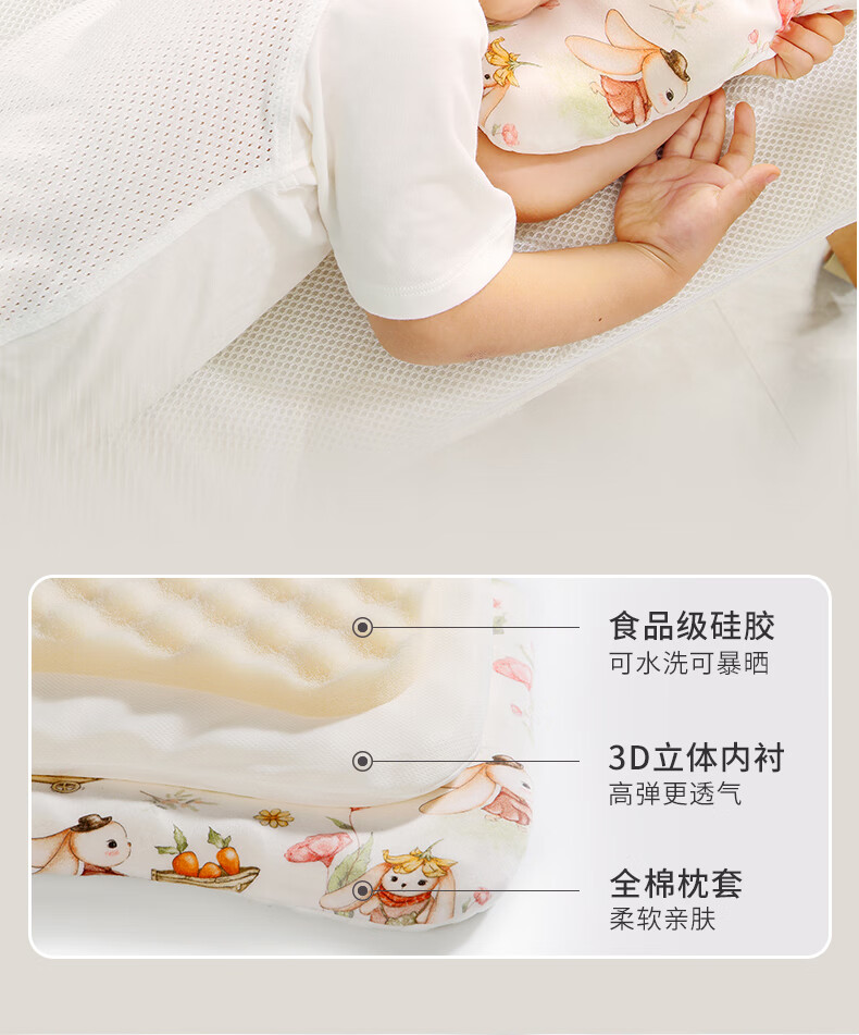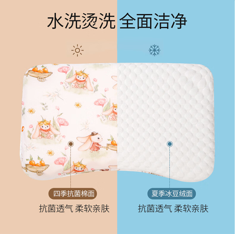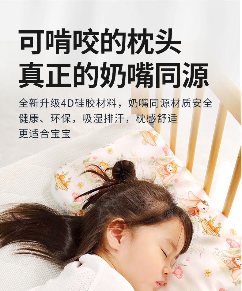安伦黛尔儿童枕头婴儿硅胶枕透气可水洗1-3-6岁6个月以上幼儿宝宝四季通用 冷暖双面-【3个月-2岁】小兔柔柔