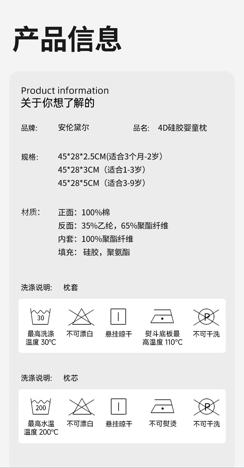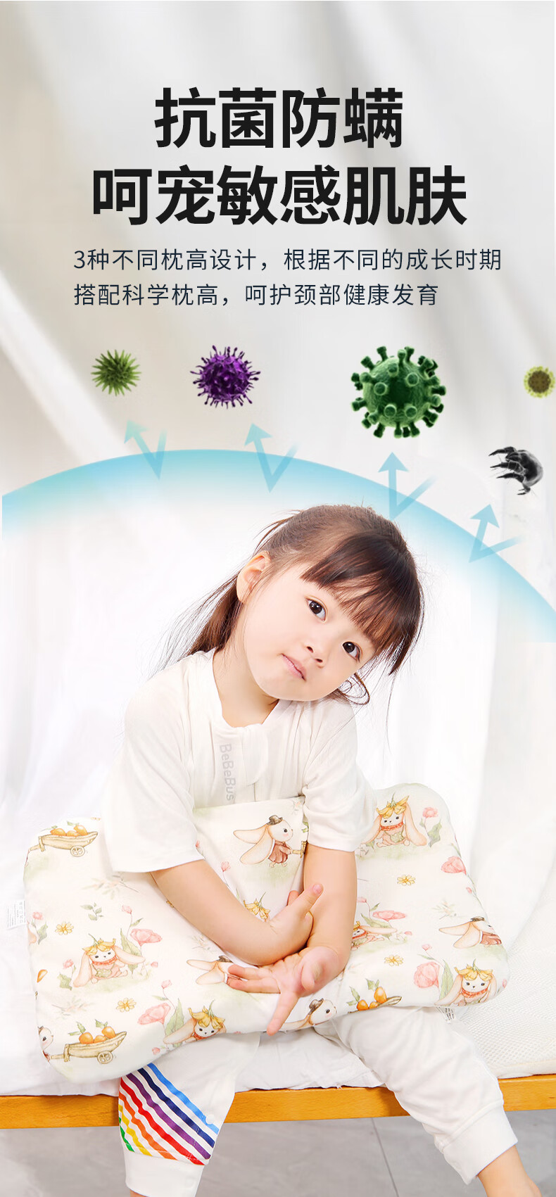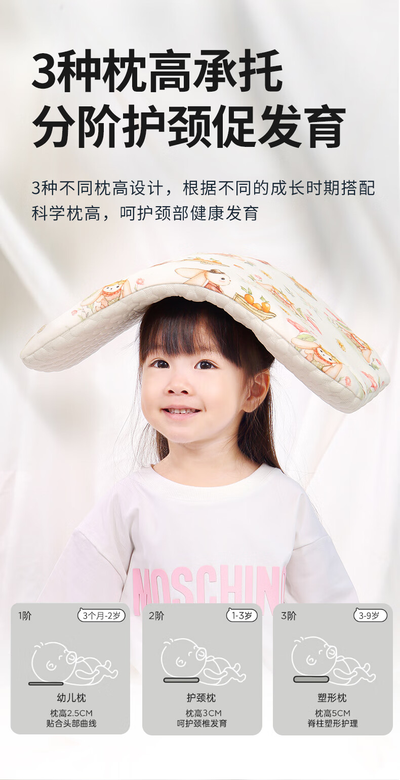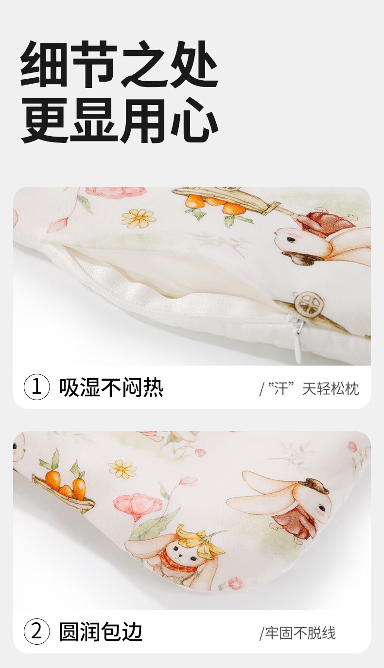 安伦黛尔儿童枕头婴儿硅胶枕透气可水洗1-3-6岁6个月以上幼儿宝宝四季通用 冷暖双面-【3个月-2岁】小兔柔柔
