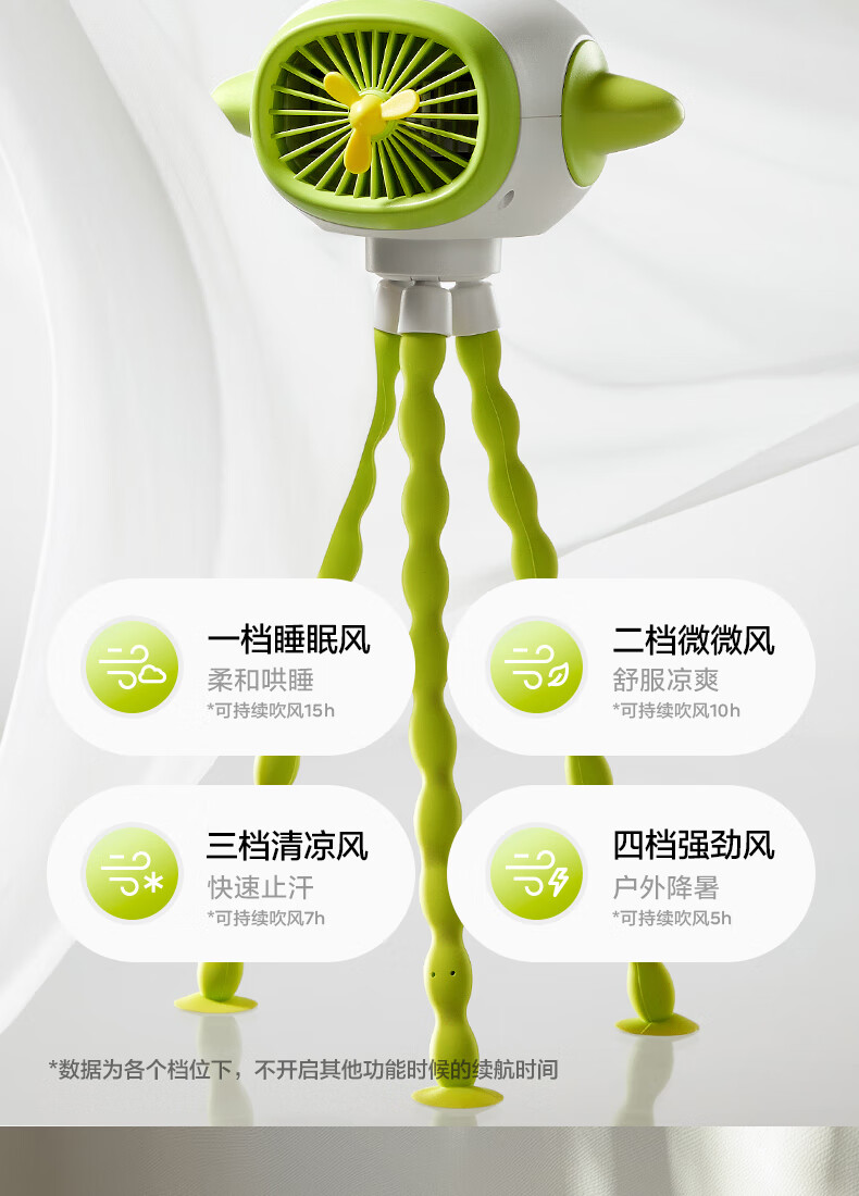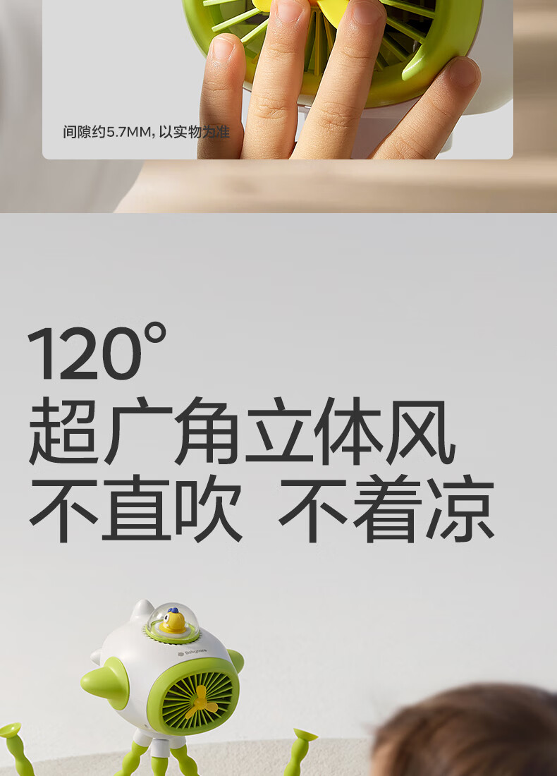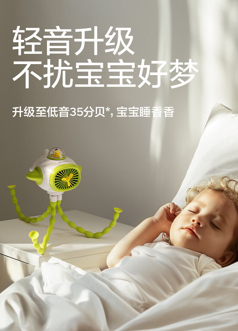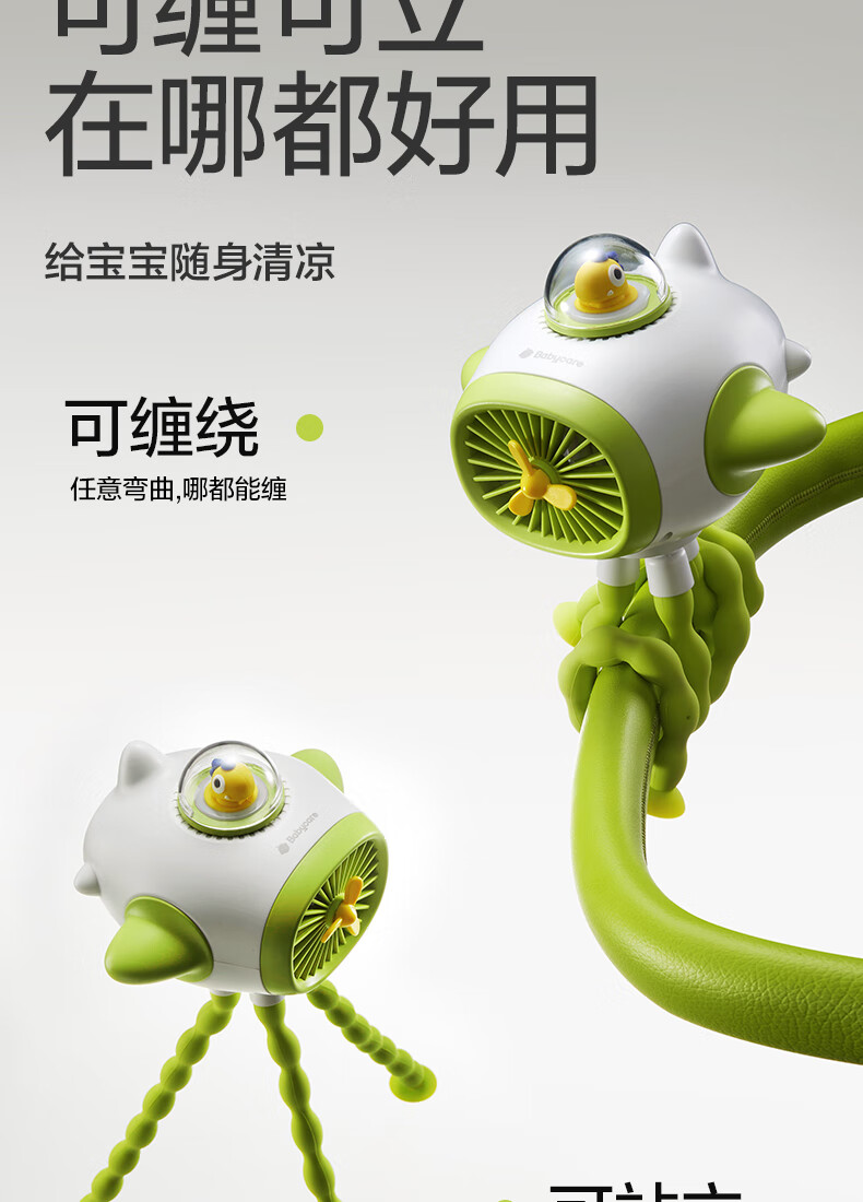 babycare宝宝婴儿八爪鱼小风扇便携式可充电可摇头 原点白【新款】15H超长续航