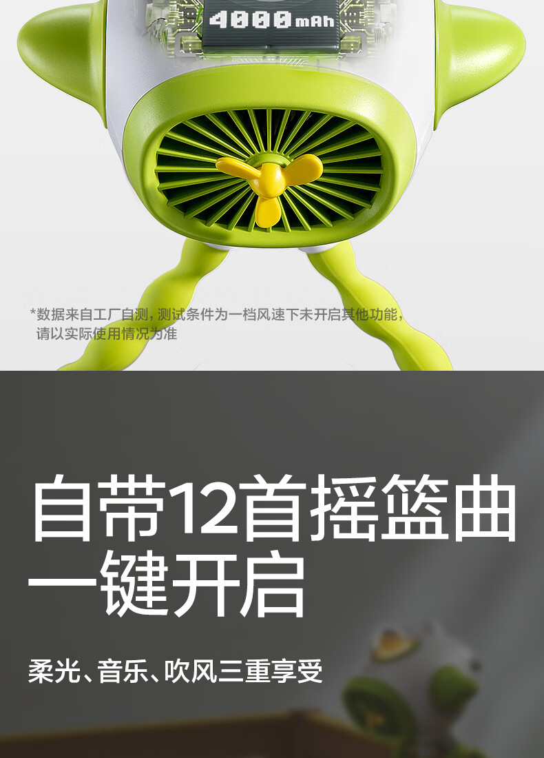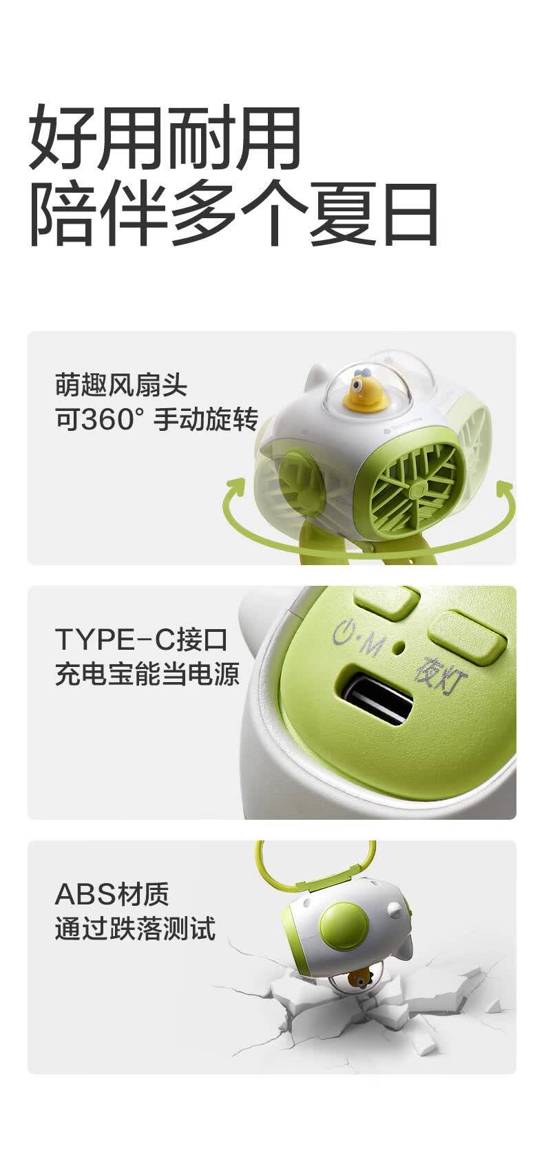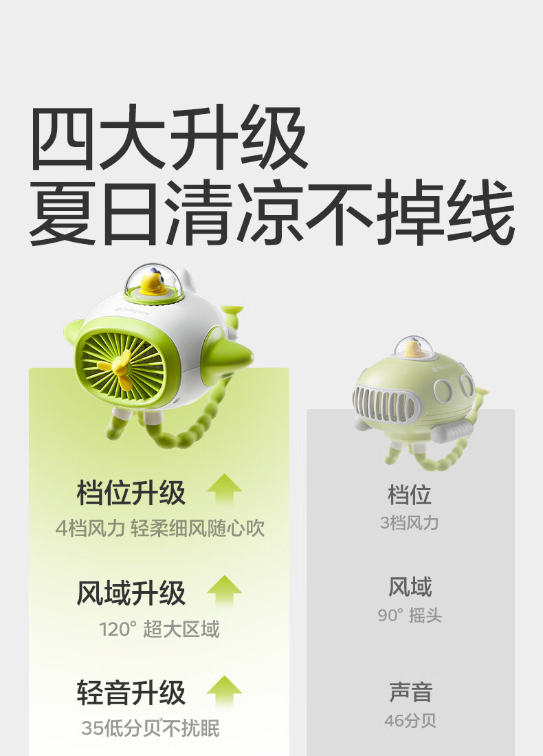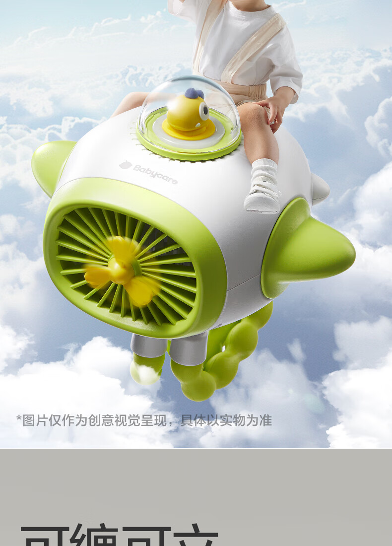 babycare宝宝婴儿八爪鱼小风扇便携式可充电可摇头 原点白【新款】15H超长续航