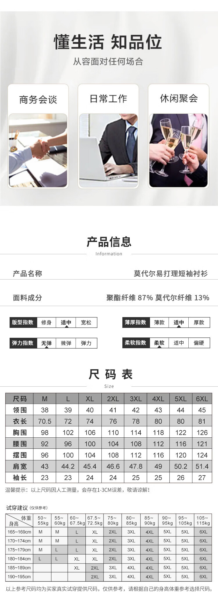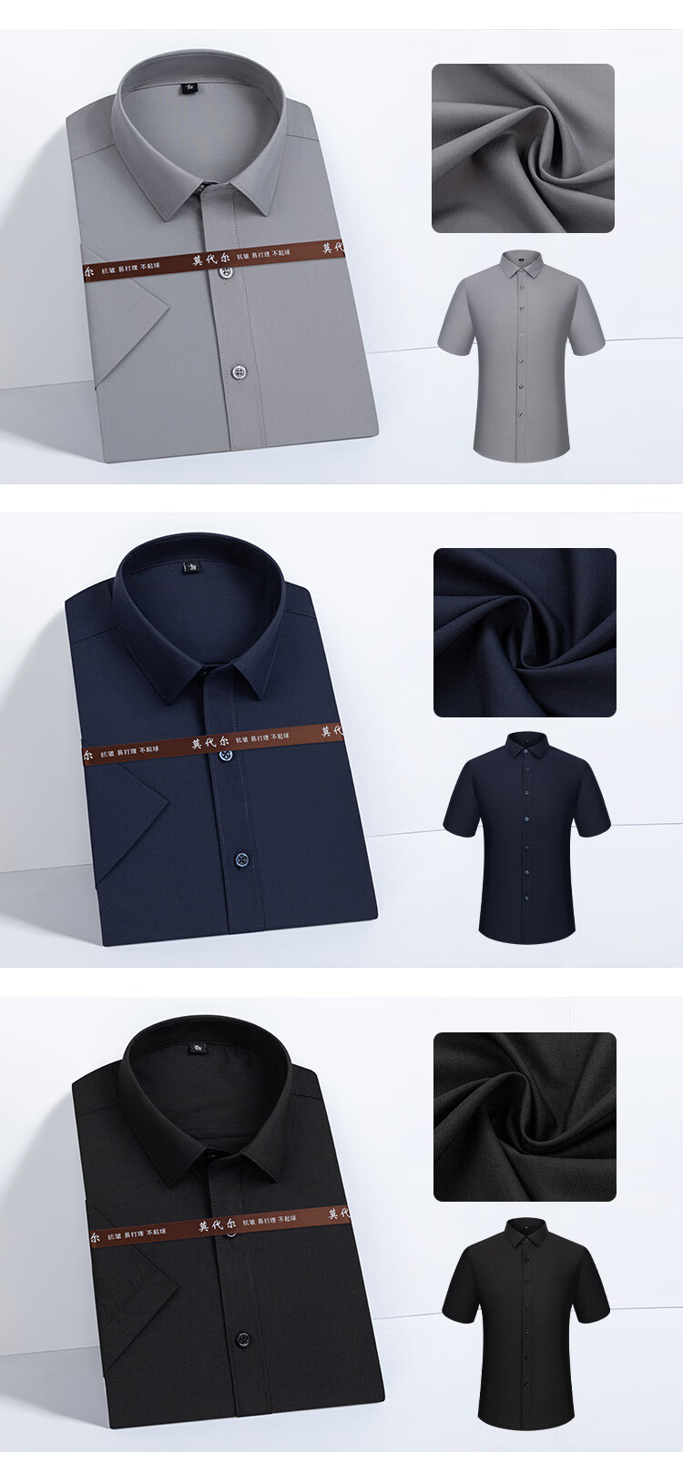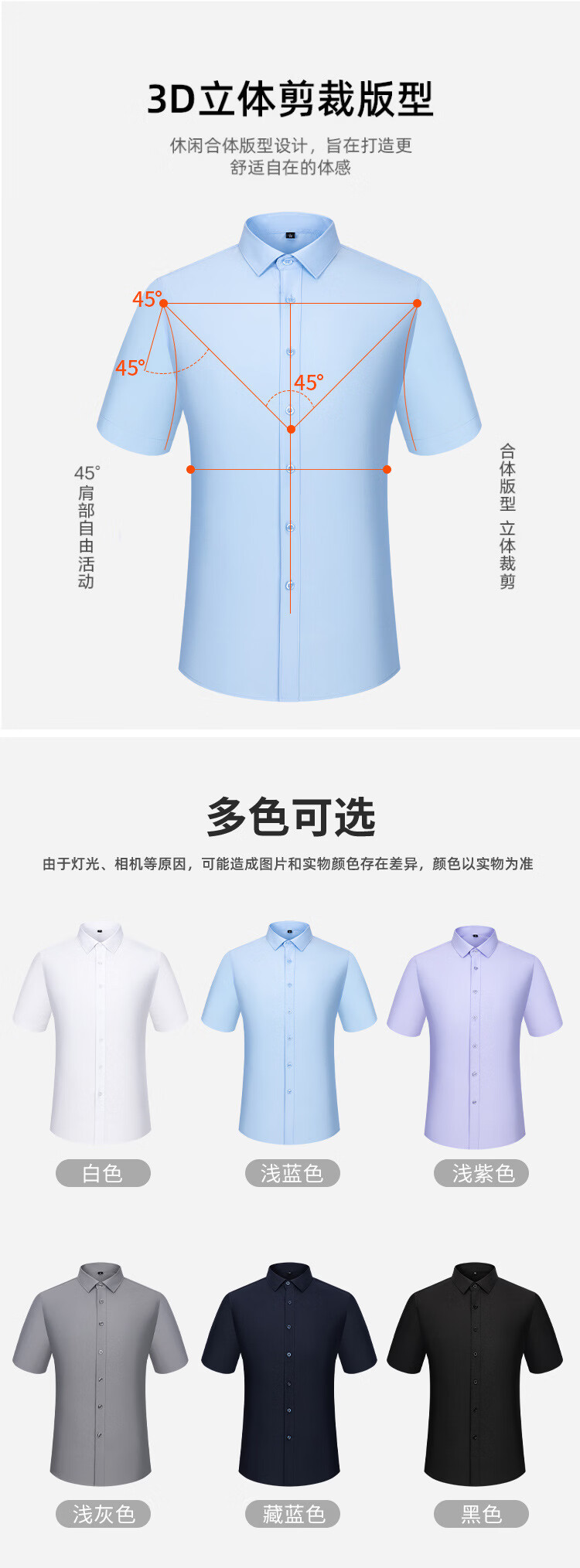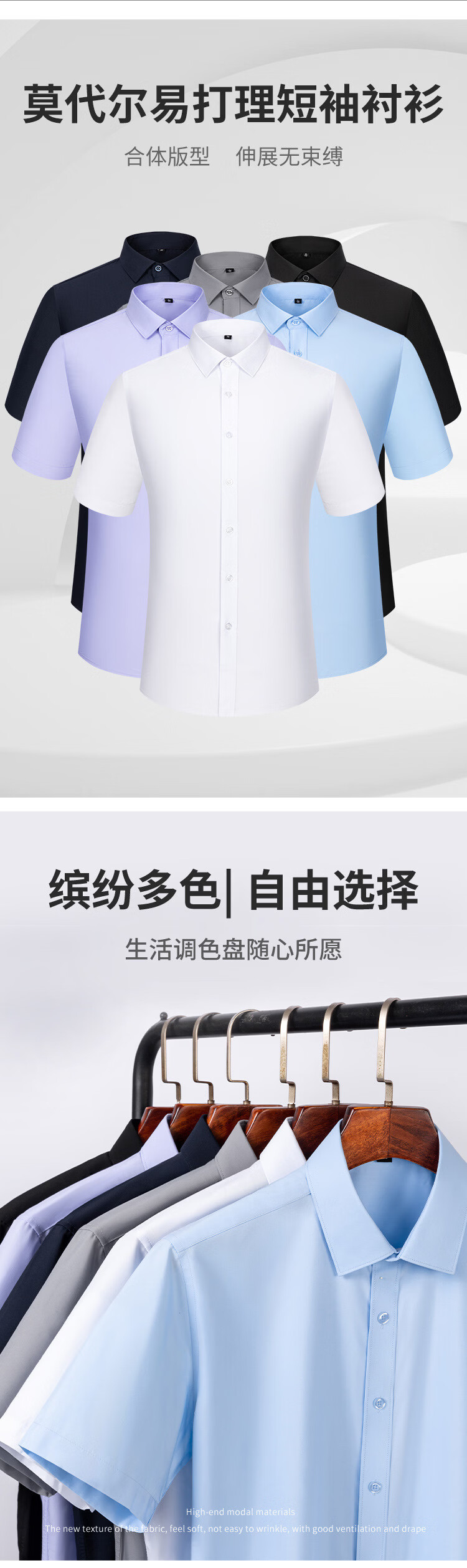 莫代尔衬衫男职业短袖白衬衣商务职业男士衬衣修身 藏青色 45