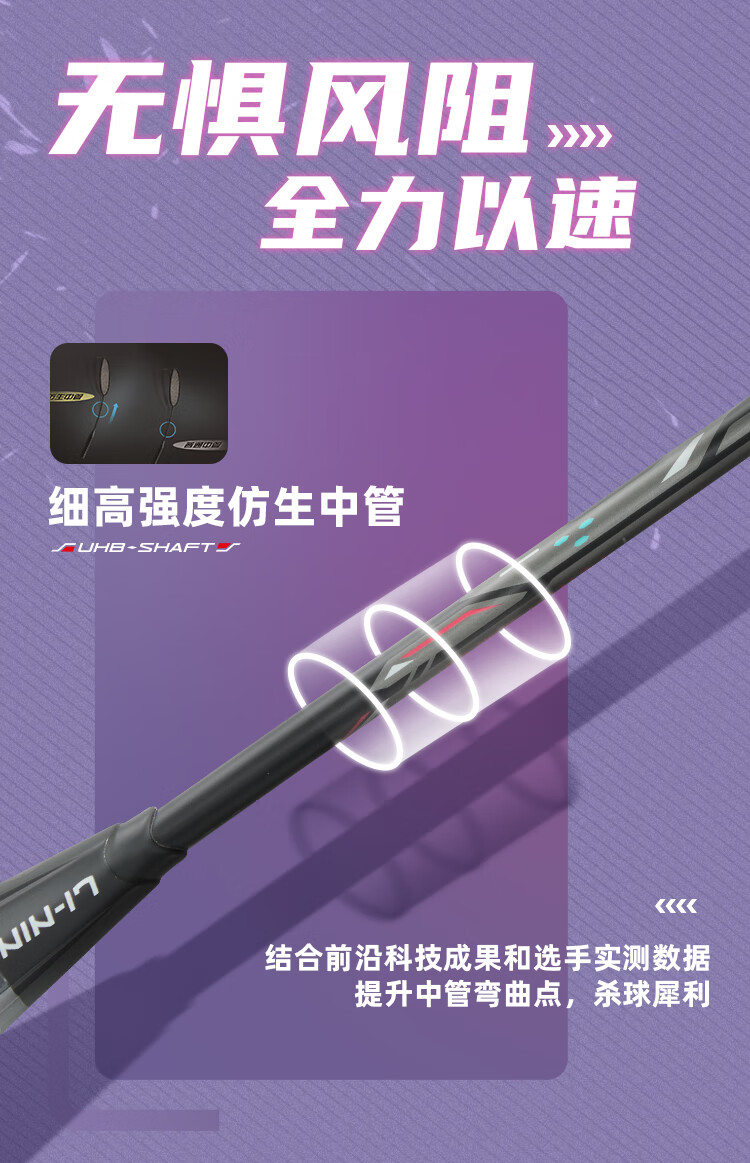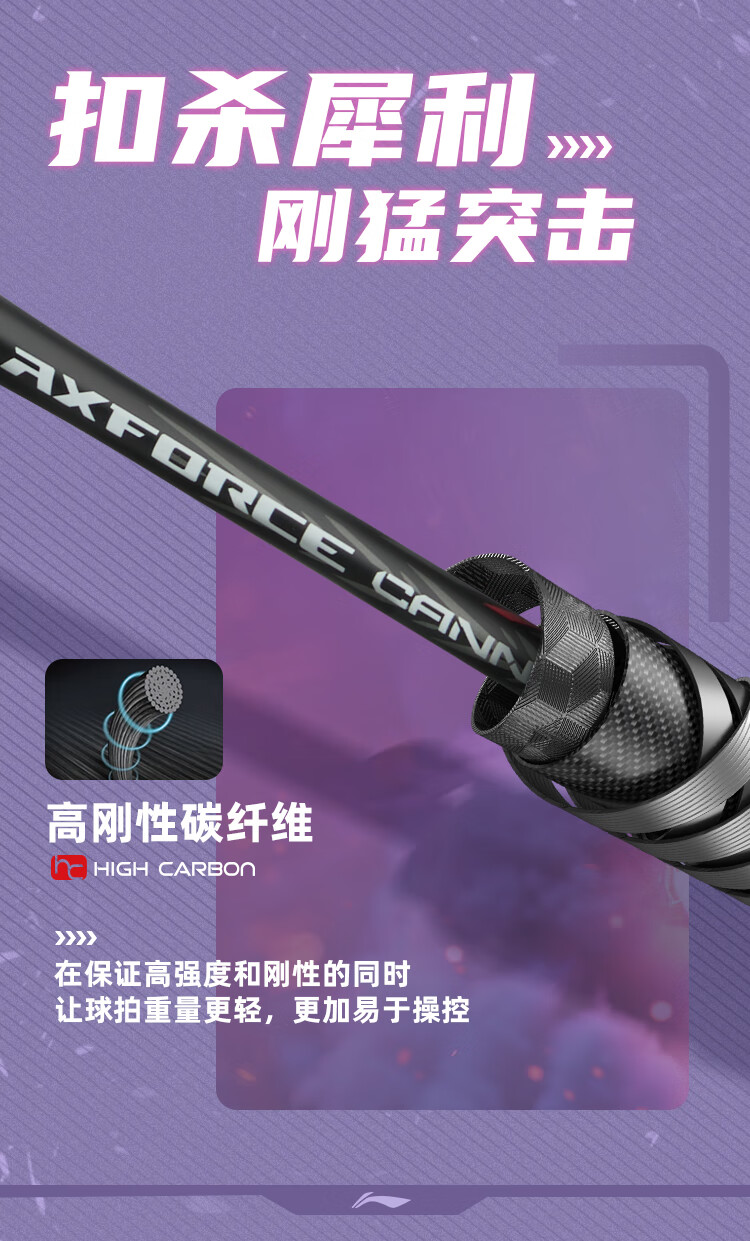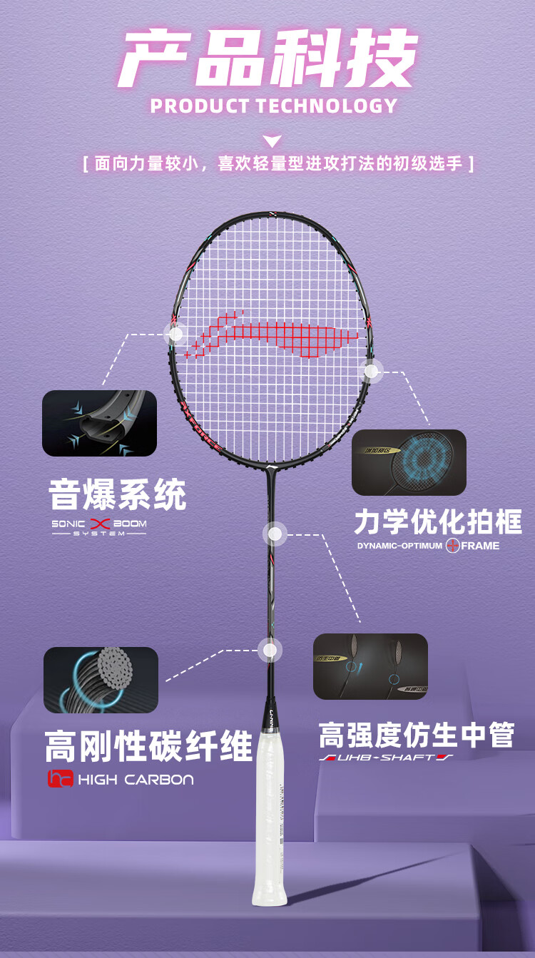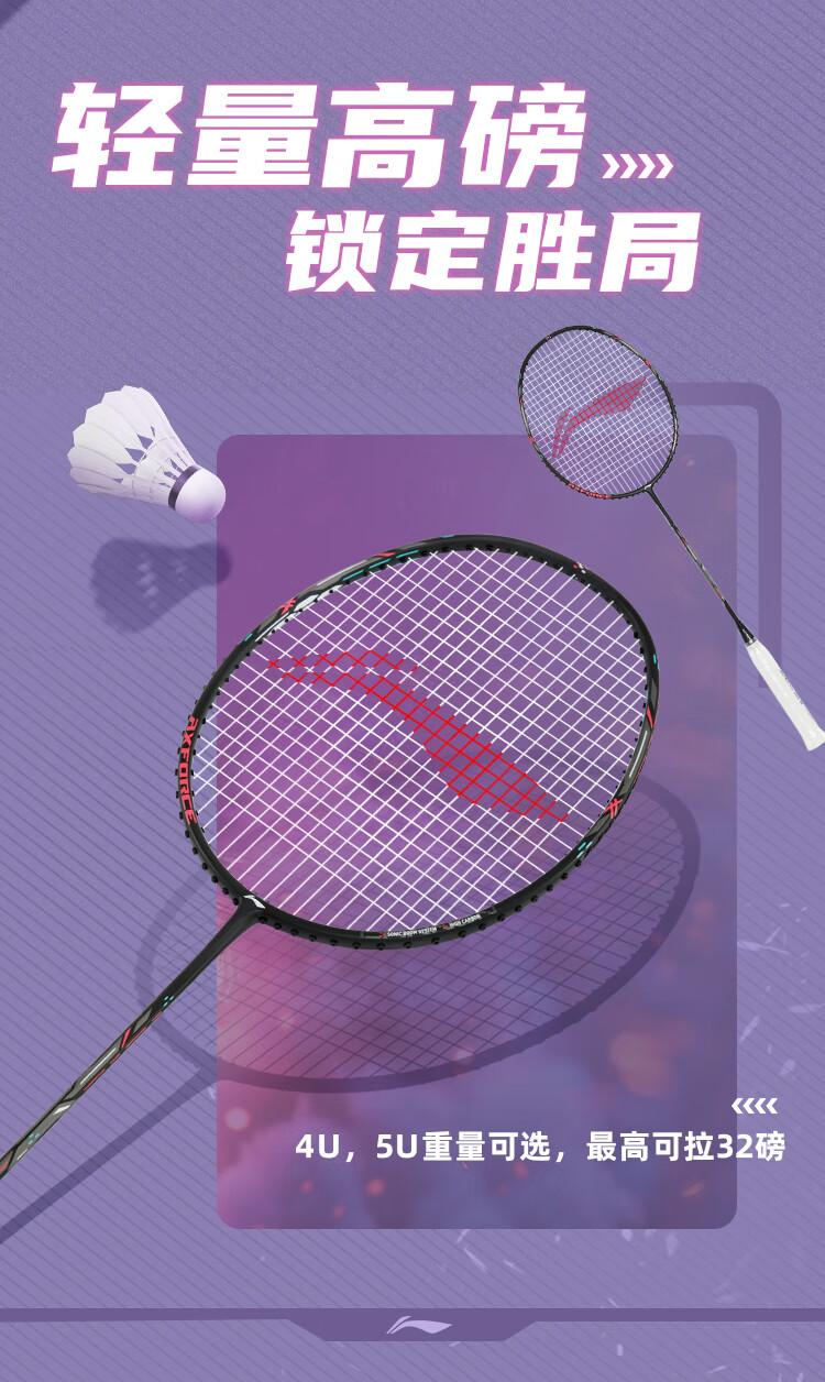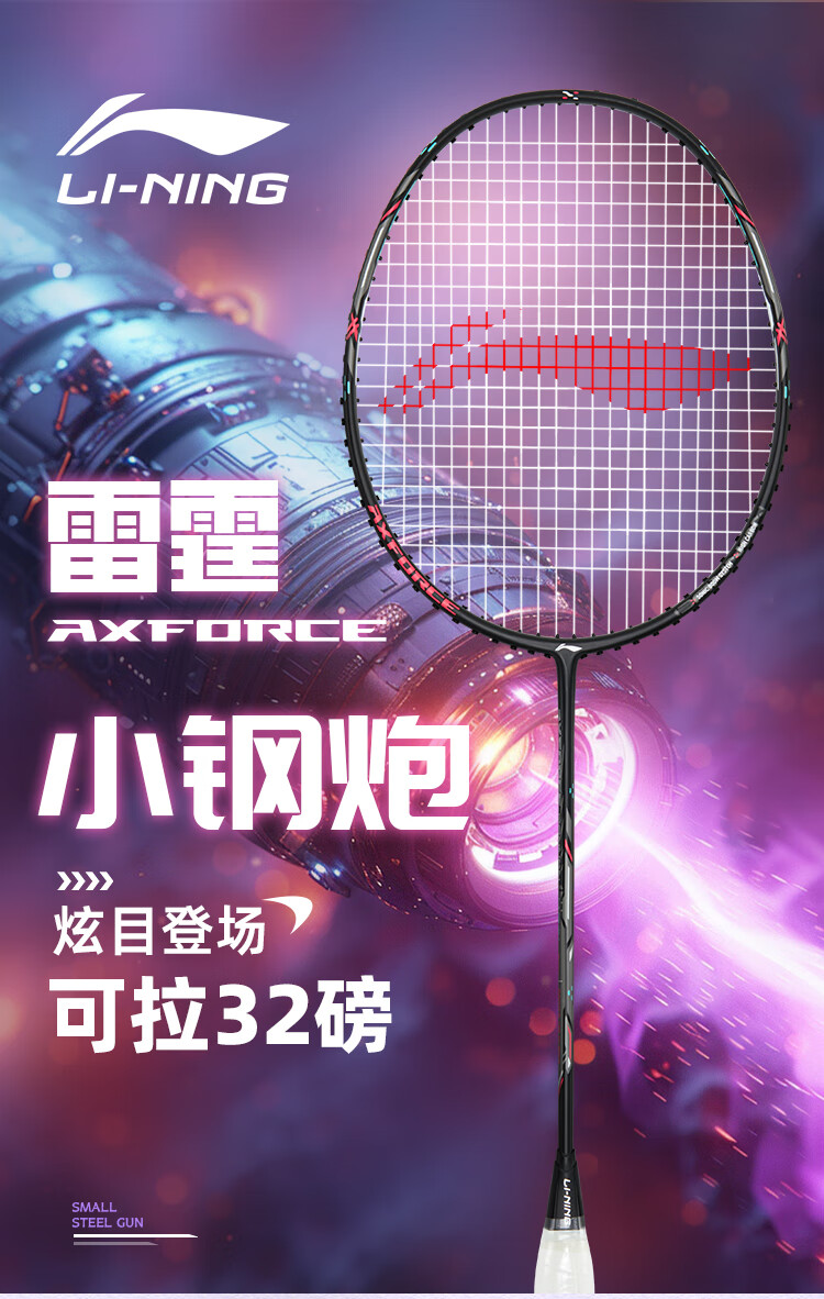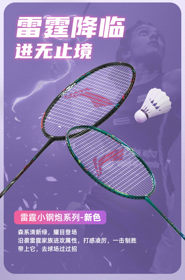 李宁(LI-NING)羽毛球拍雷霆小钢炮高磅羽拍全碳素超轻进攻型单拍羽线可选颜色 雷霆小钢炮(4U)白色 配手胶+拍套+免费穿线+球*3 薰衣草/羽线 可联系客服定制磅数