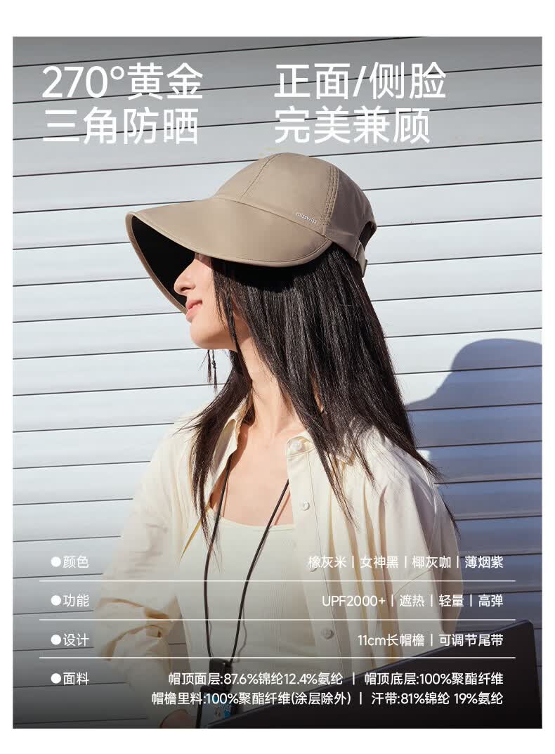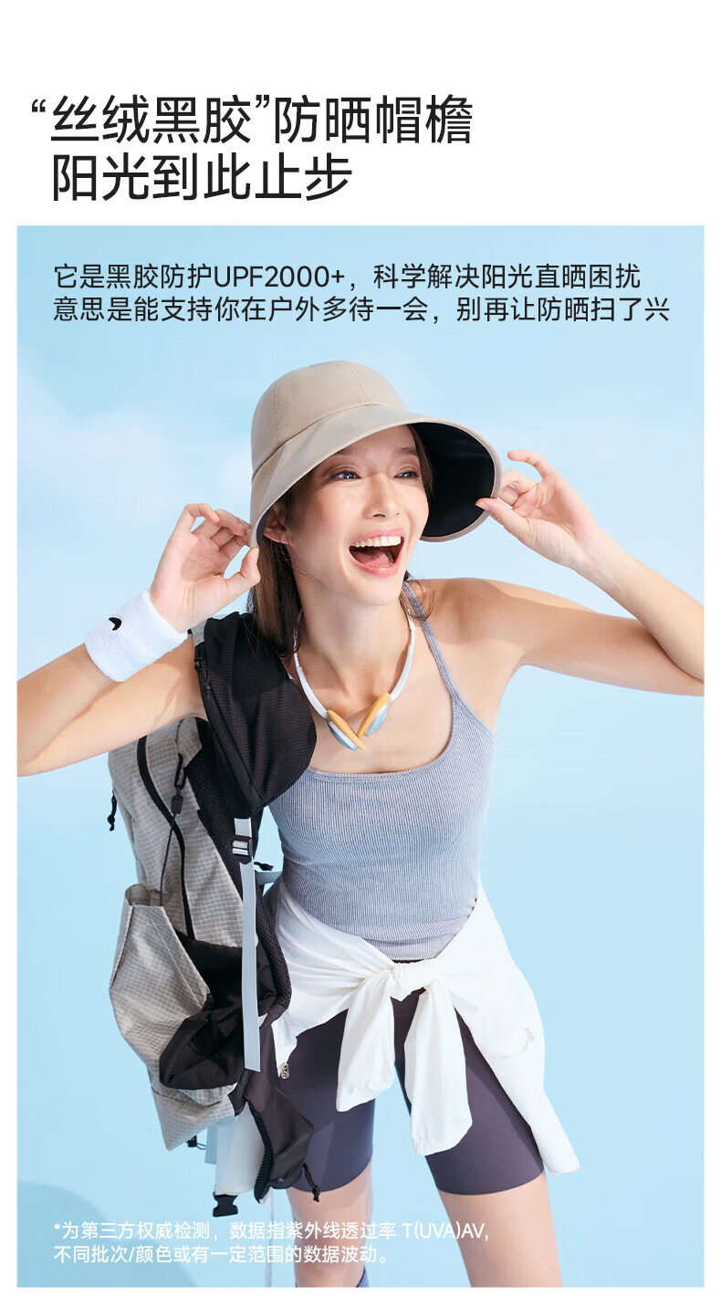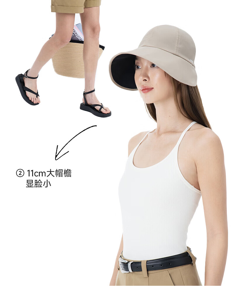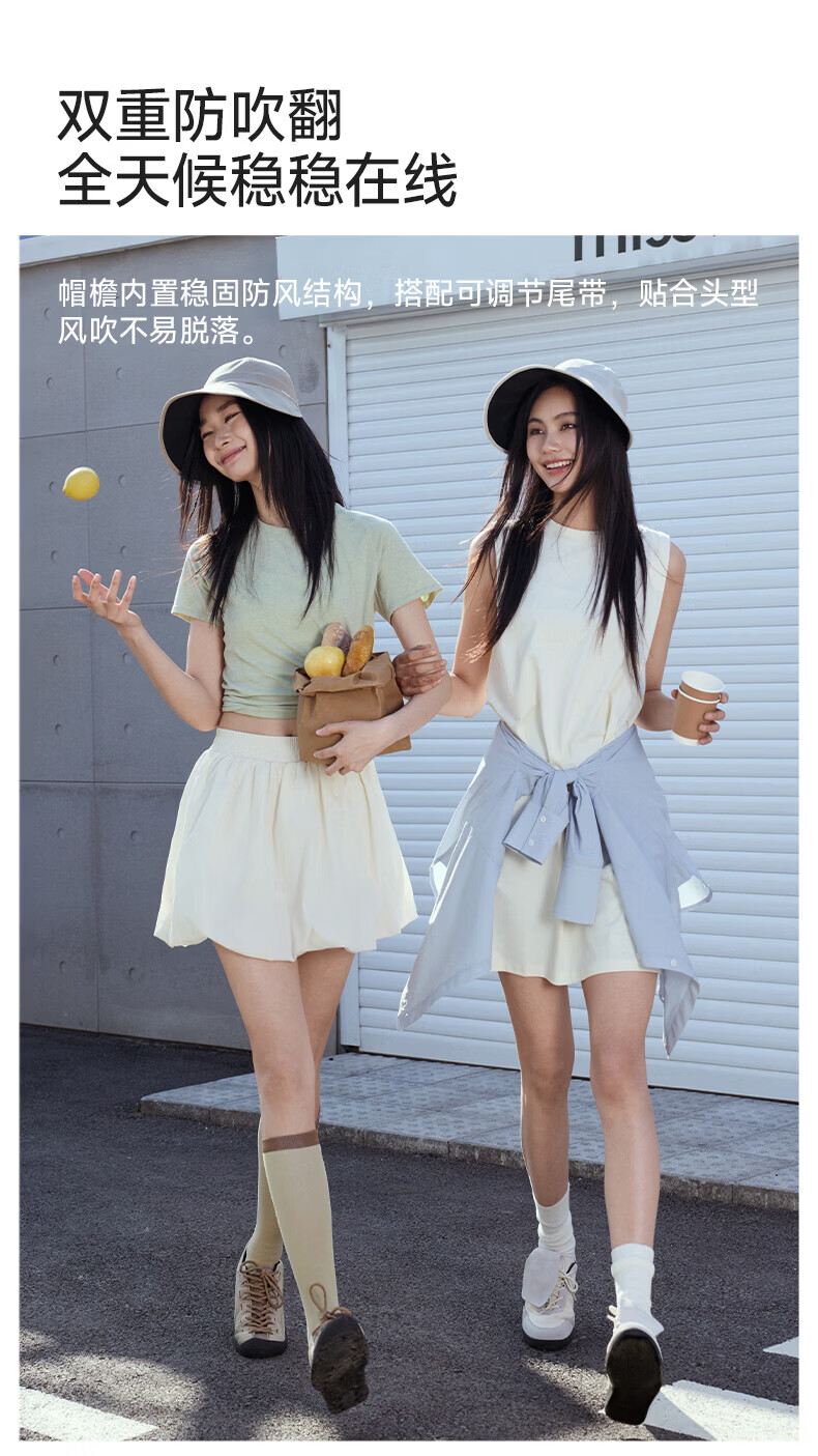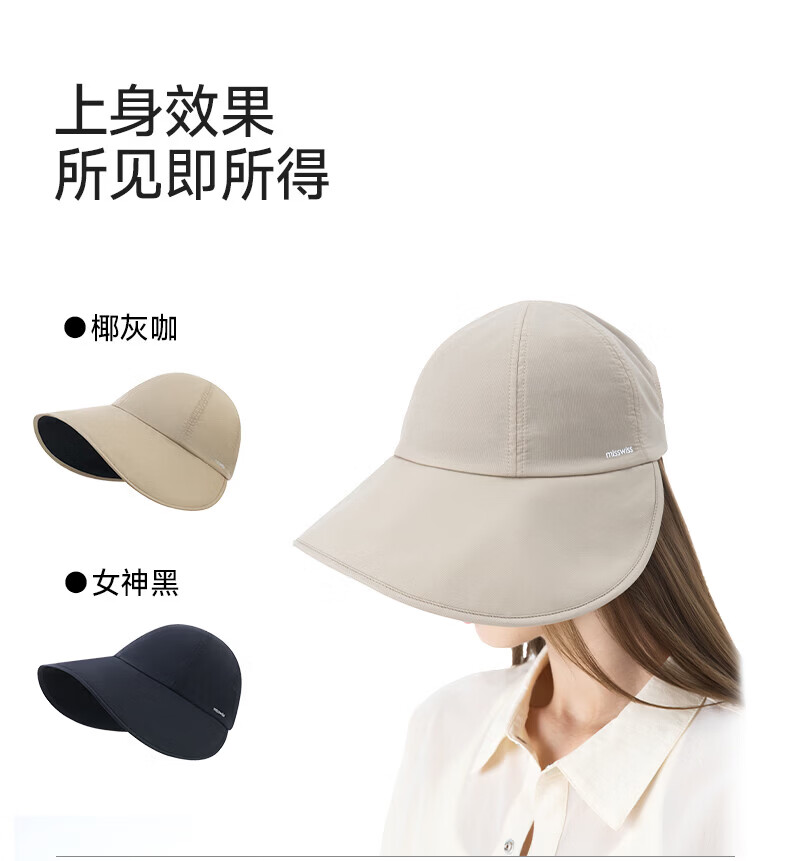 MissWiss【戚薇同款】大帽檐渔夫帽女丝绒黑胶防晒帽户外防紫外线遮阳太阳 椰灰咖 【丝绒黑胶防晒帽檐】 均码 (55-58cm)
