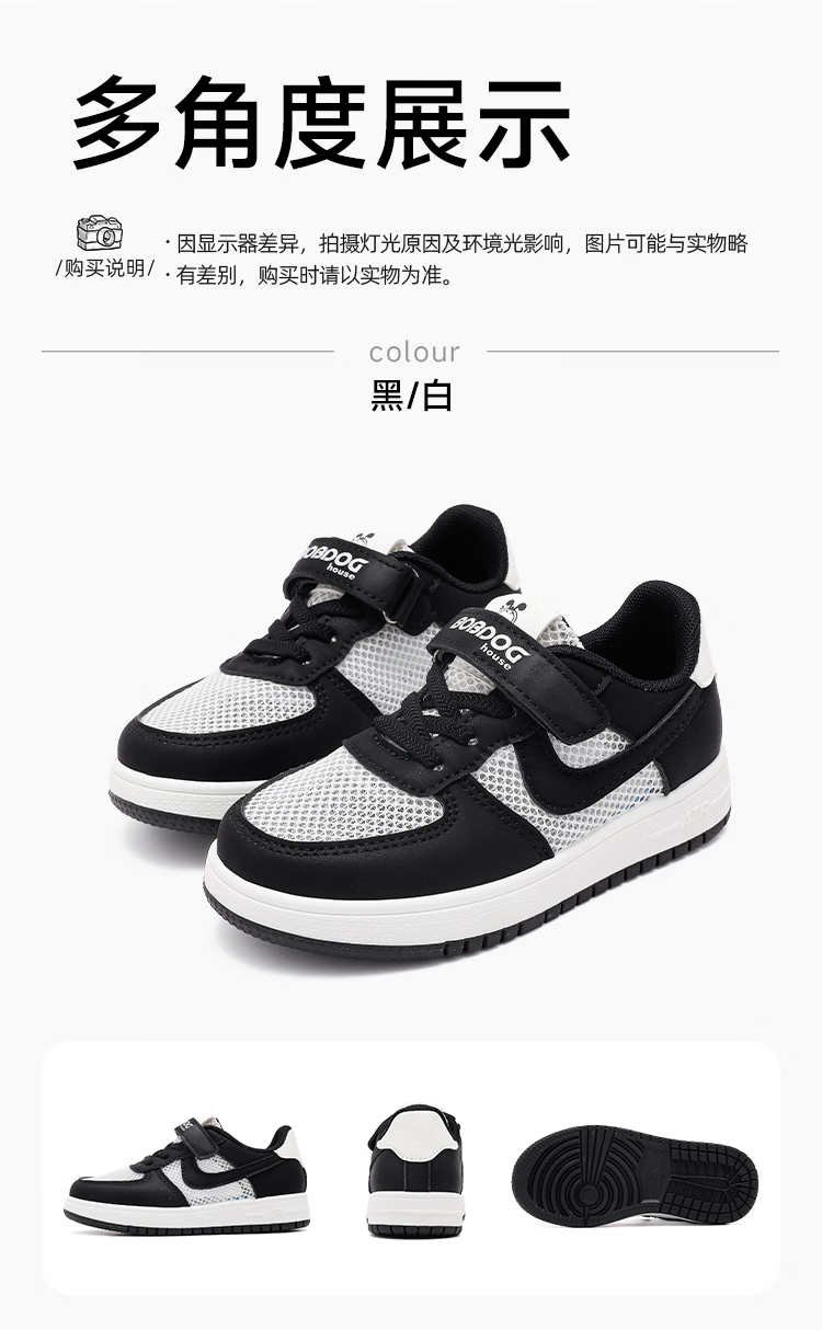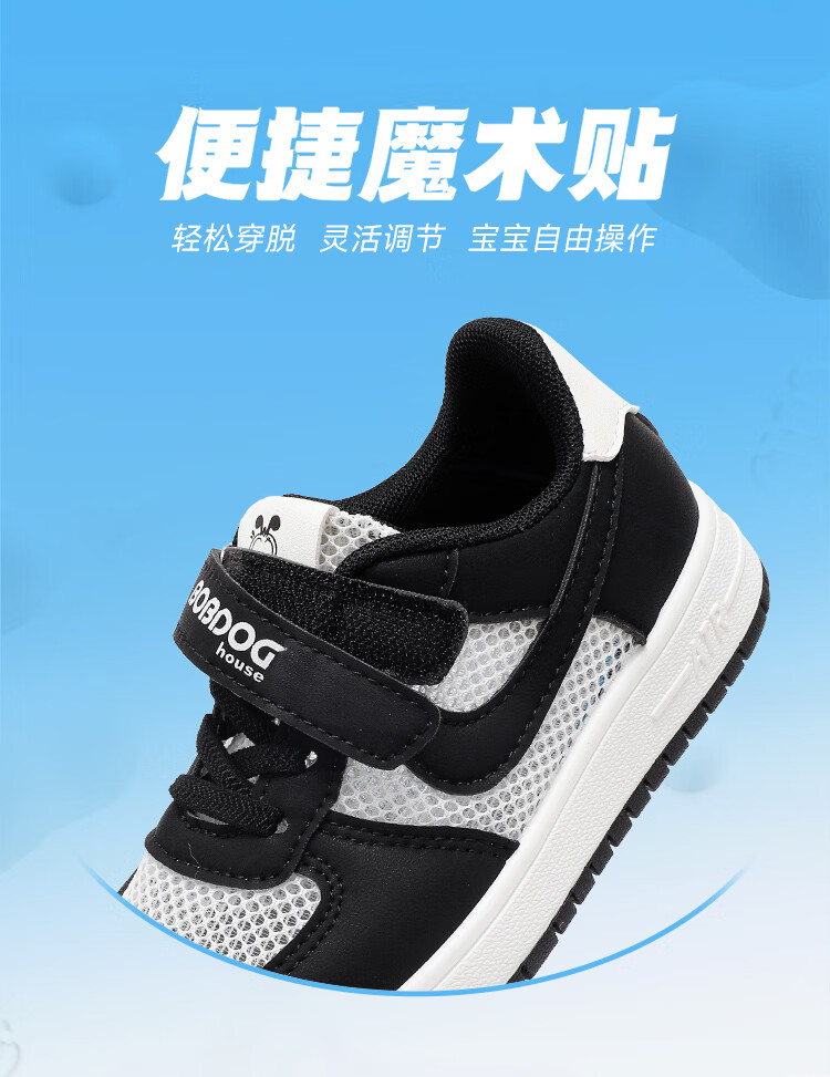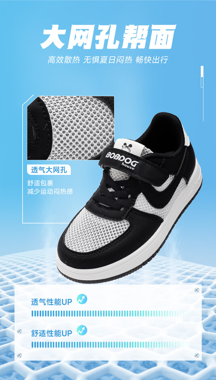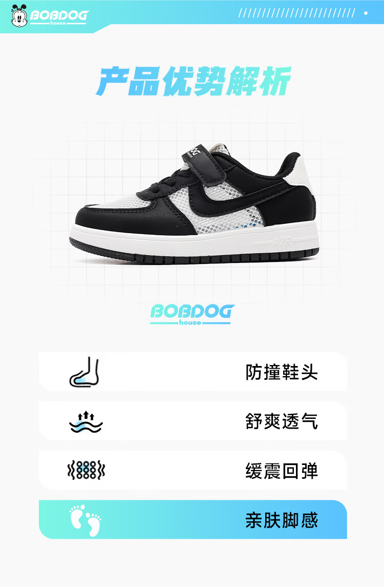 巴布豆(BOBDOG)童鞋2026夏季单网透气儿童板鞋男童小白鞋女跑鞋中大童鞋子 黑/白(革面)61001 30 适合脚长18.5cm
