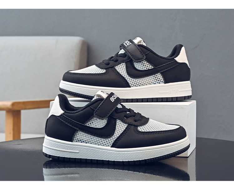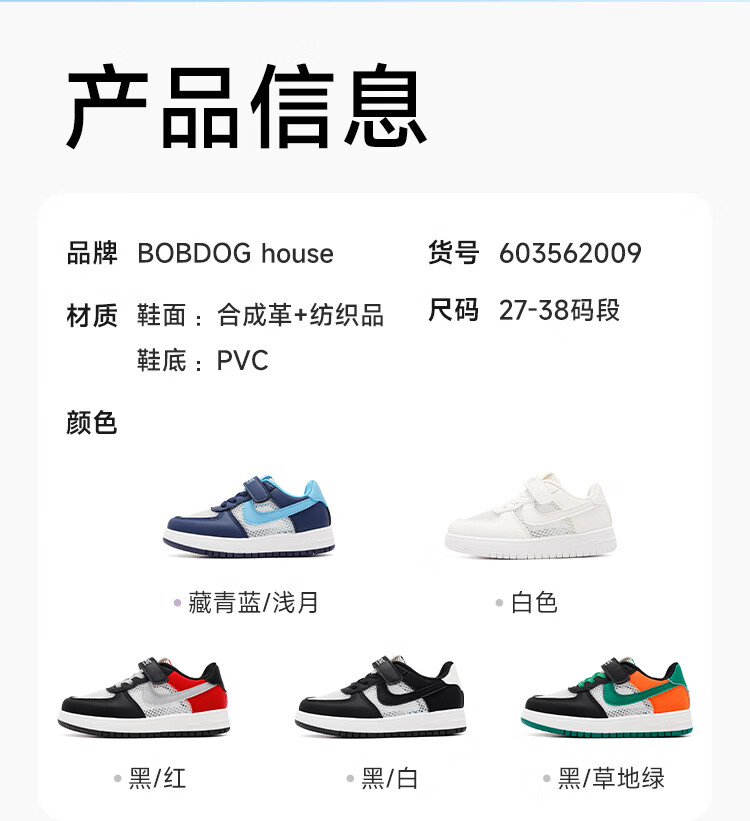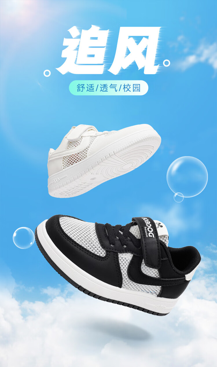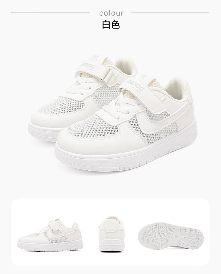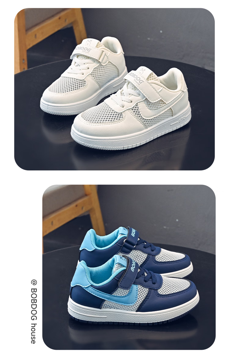 巴布豆(BOBDOG)童鞋2026夏季单网透气儿童板鞋男童小白鞋女跑鞋中大童鞋子 黑/白(革面)61001 30 适合脚长18.5cm