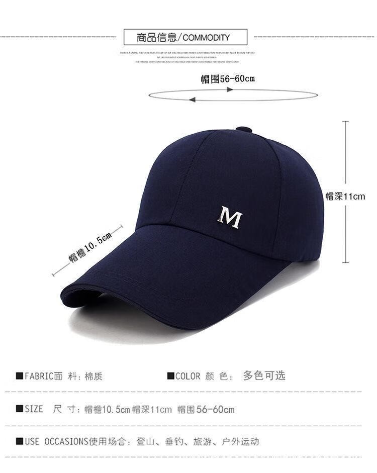 帽子男春秋季加长檐防晒遮阳太阳帽户外休闲鸭舌帽时尚百搭棒球帽 红色(1个装) 可调节
