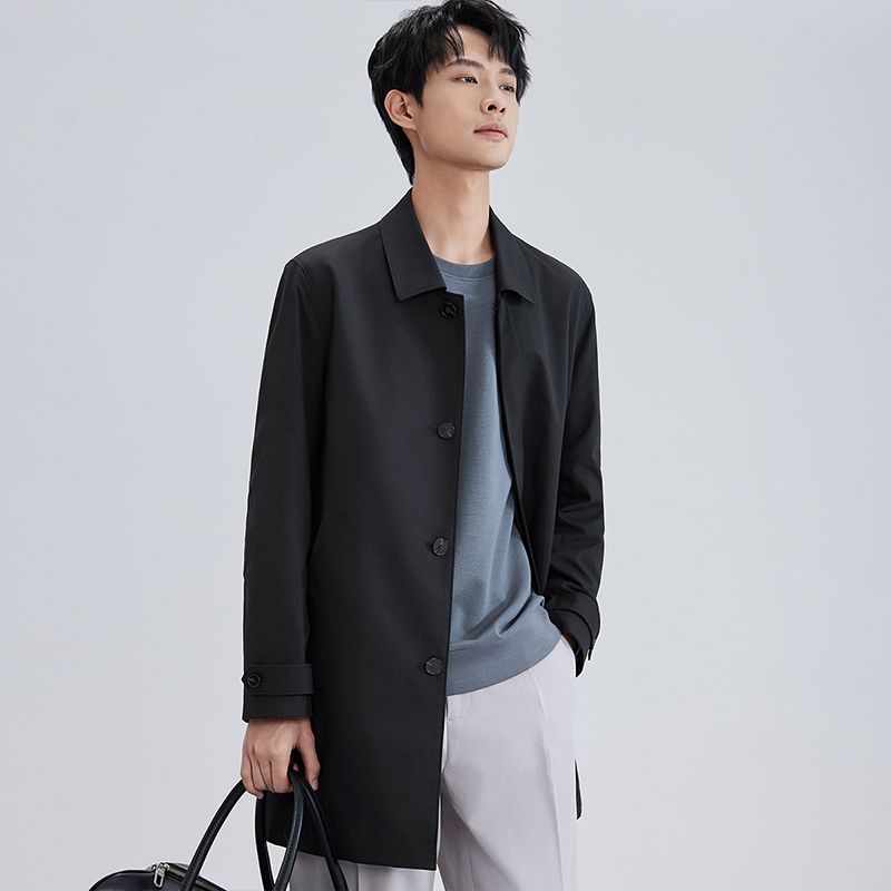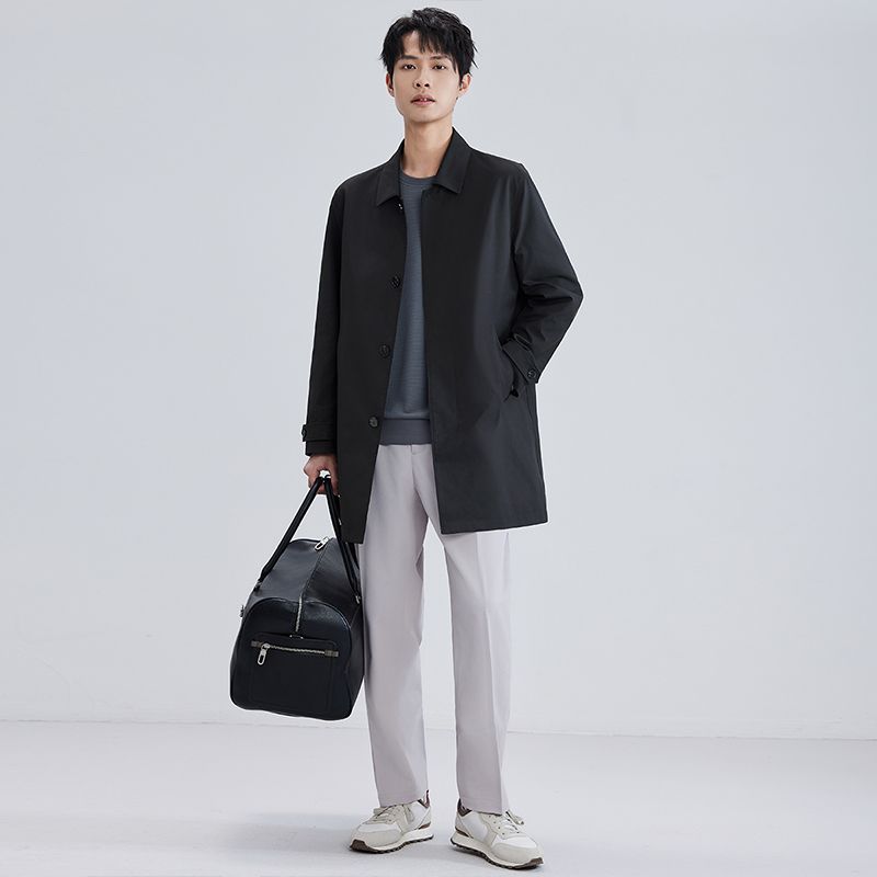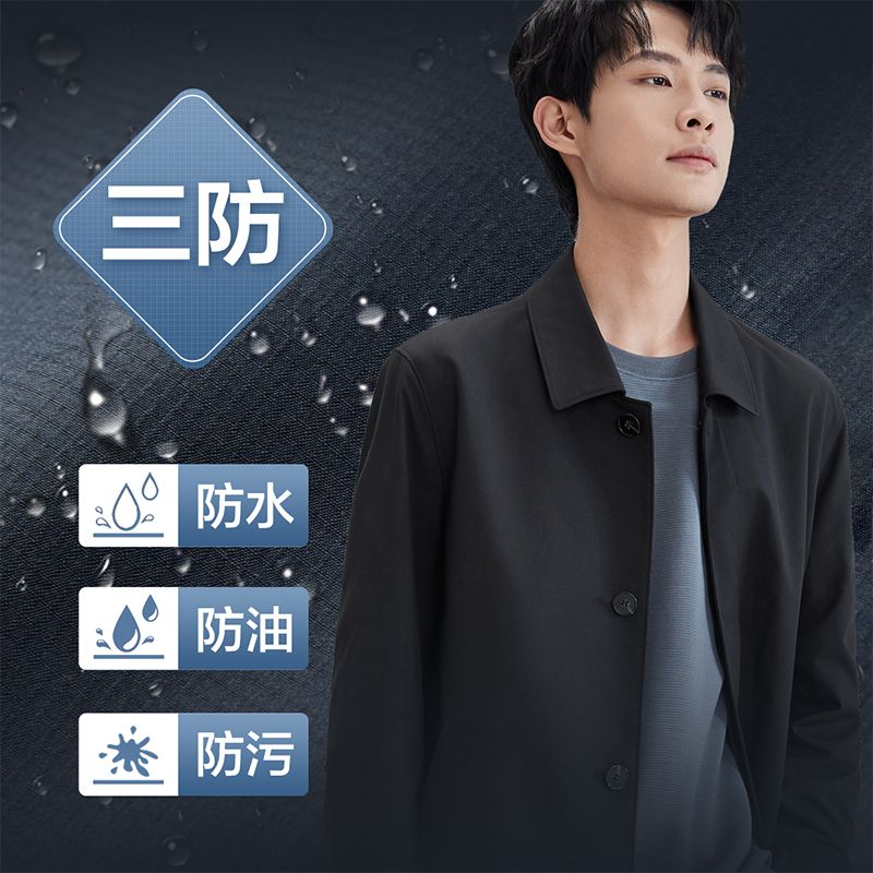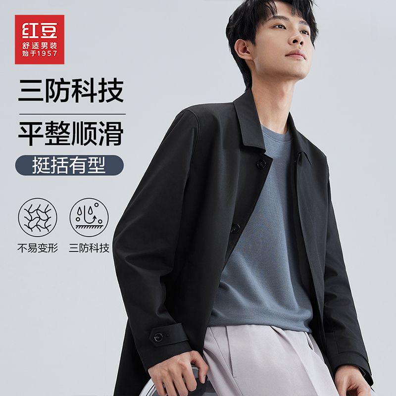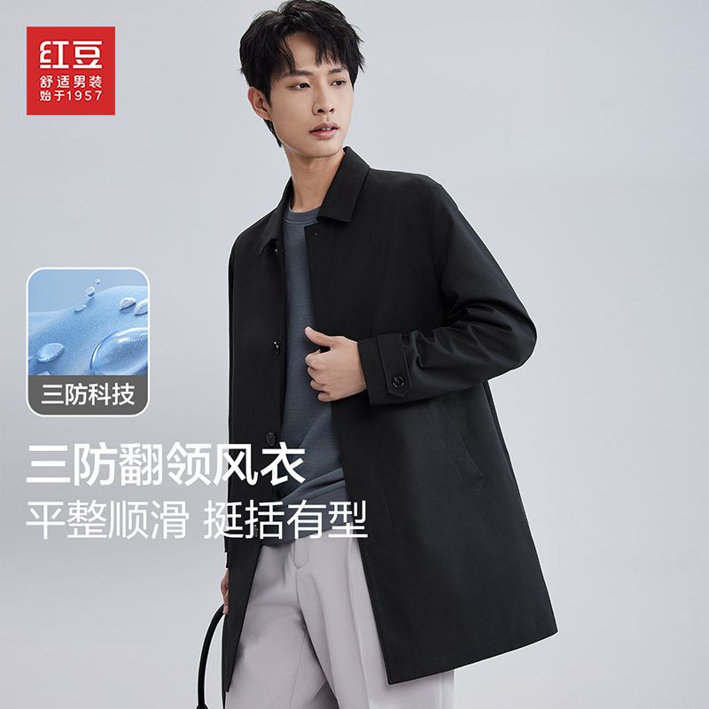 【三防科技】红豆男装春秋季简约有型中长款翻领男士风衣外套