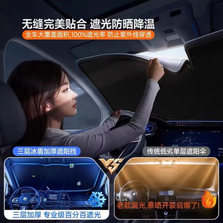 LINGPAR汽车遮阳前挡 钛银加厚0透光 车内降温神器