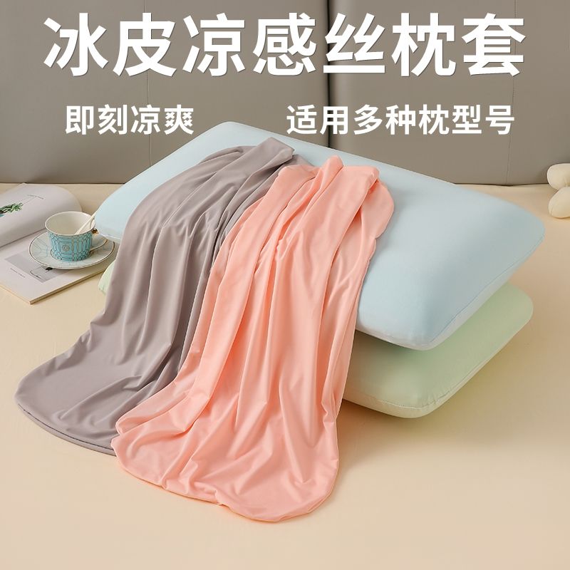 新款冰皮凉感枕套冰丝记忆棉枕头套大号夏季枕芯内胆套一对可水洗