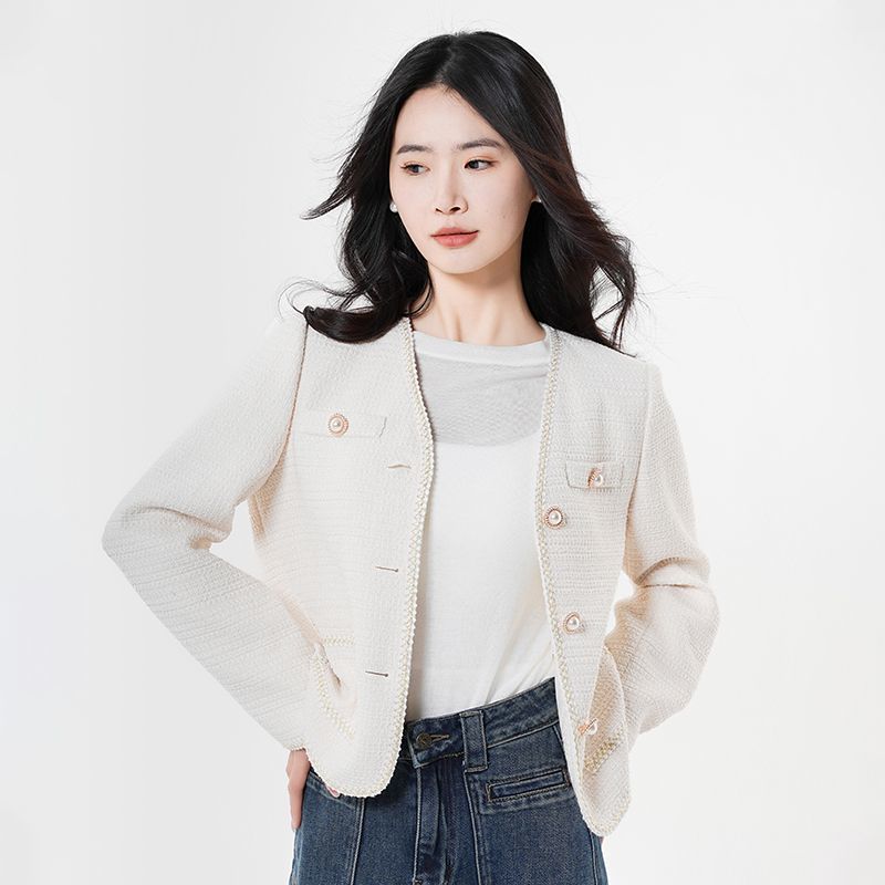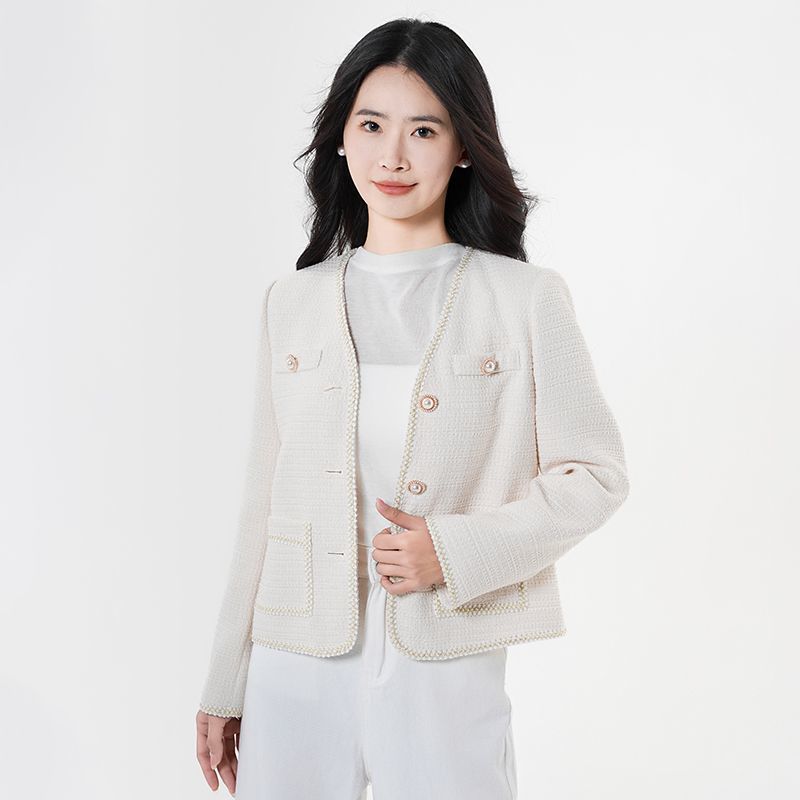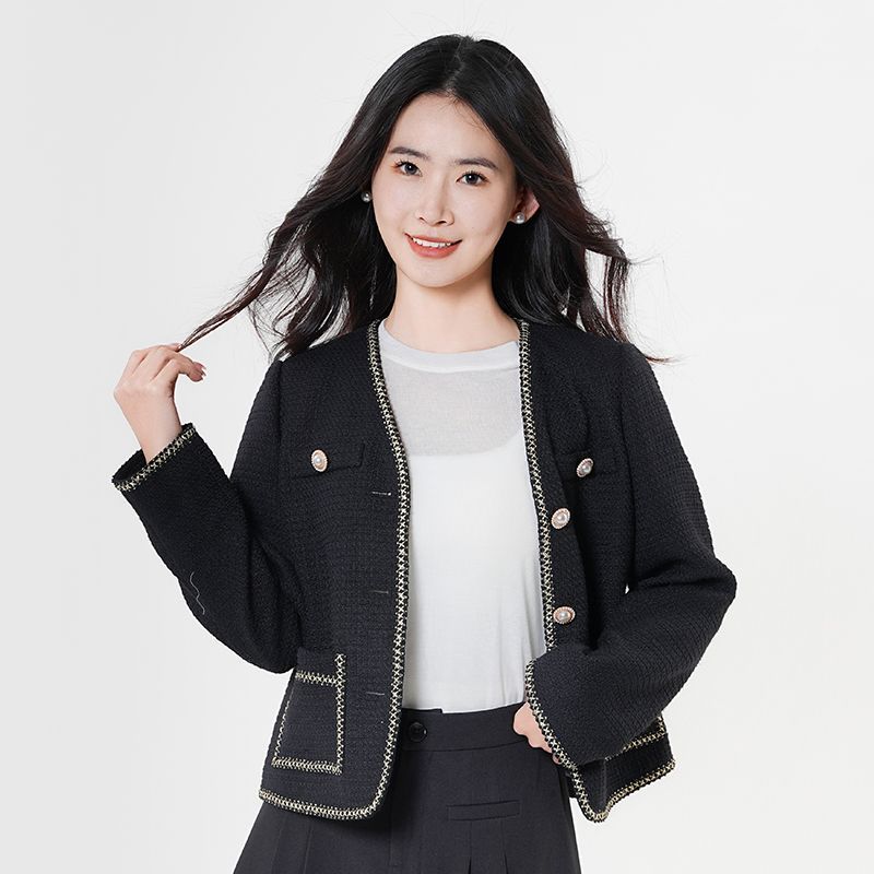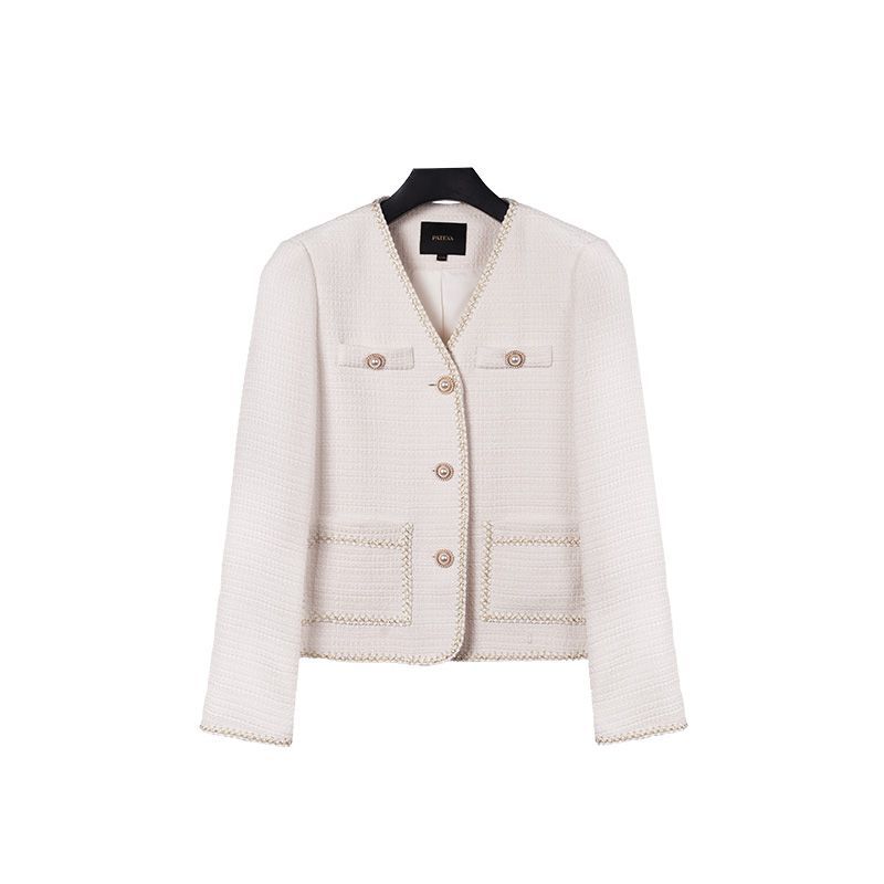 帕特纳气质名媛风小香风外套2025年春秋新款女经典V领百搭上衣