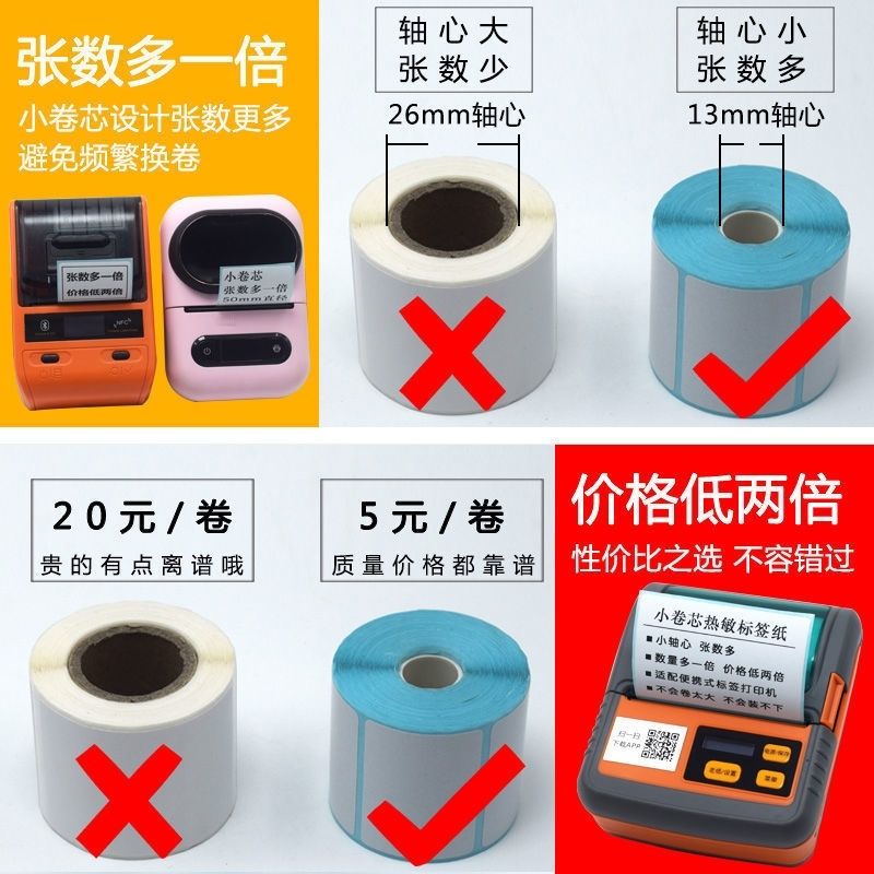 小卷芯热敏打印纸小型机小管芯标签纸30 40 5060德佟璞趣汉印便携
