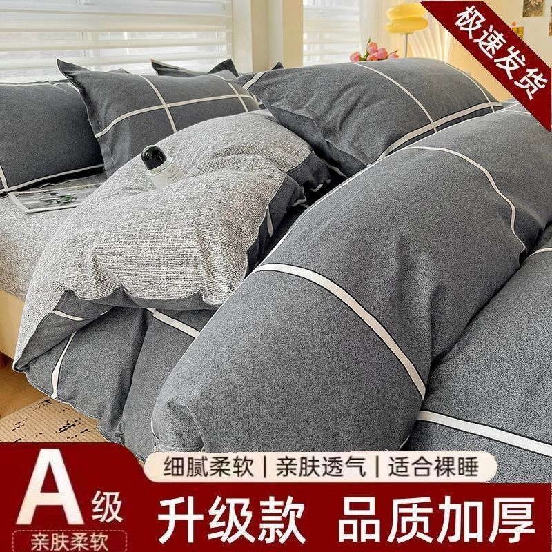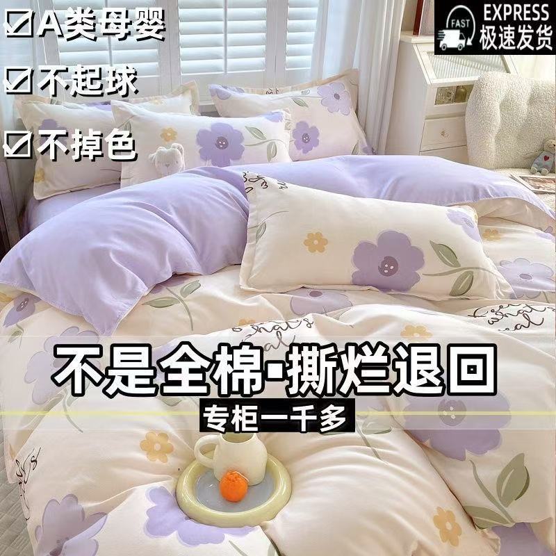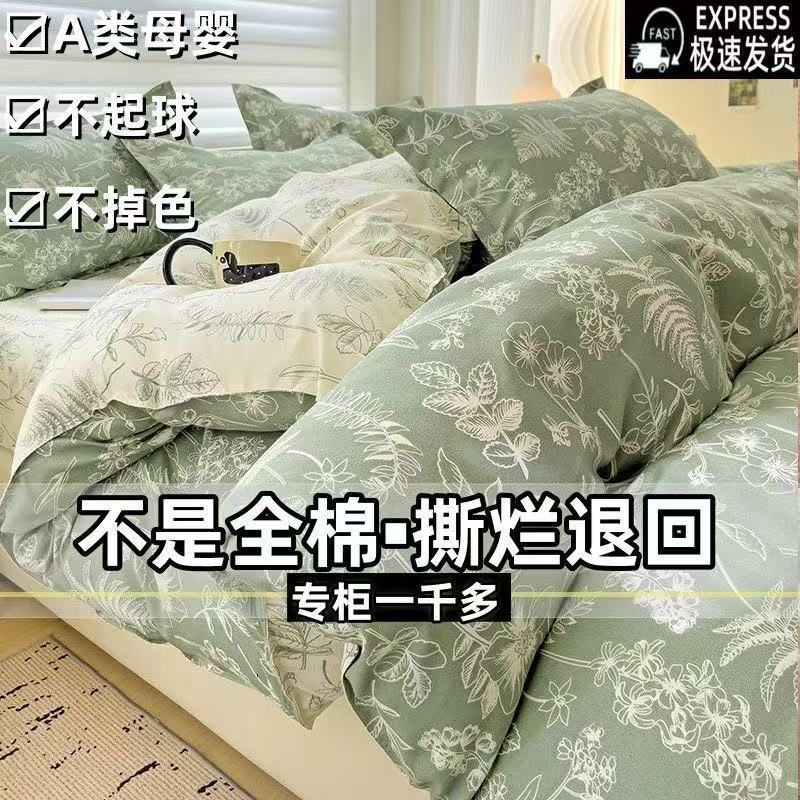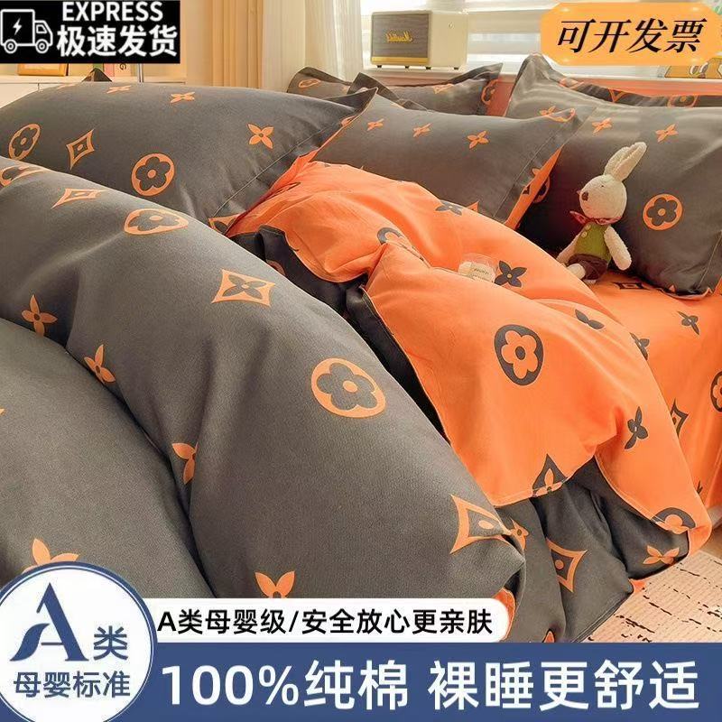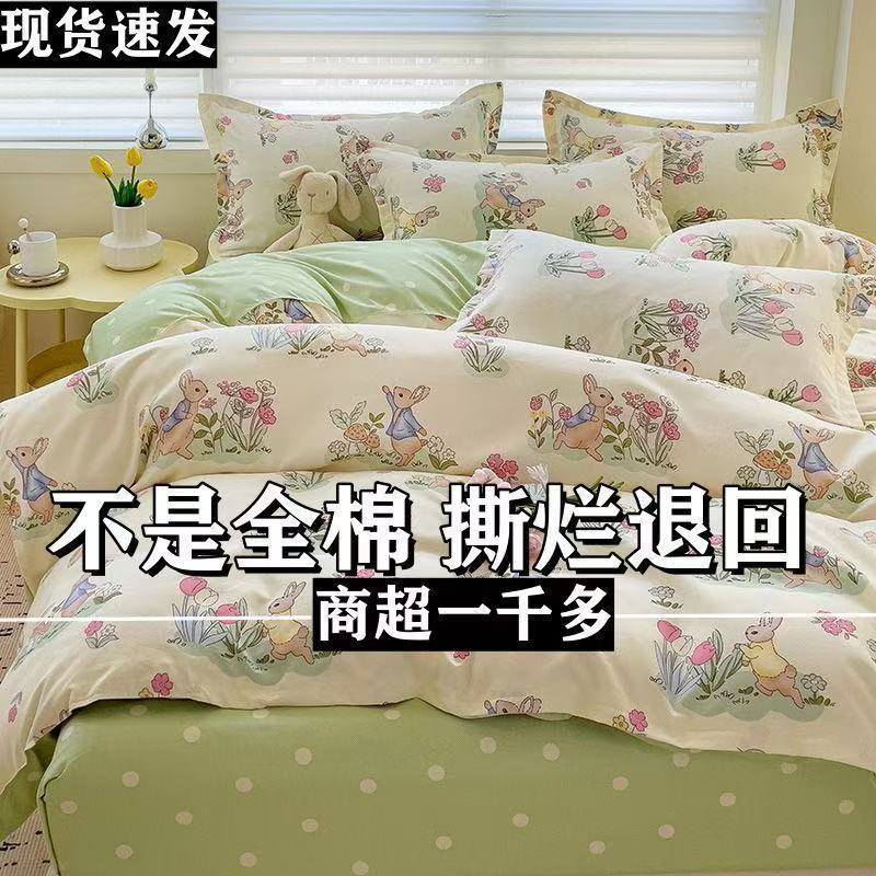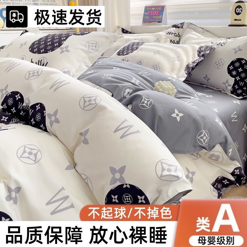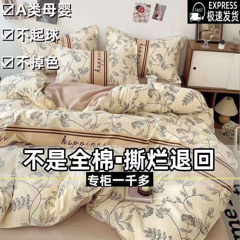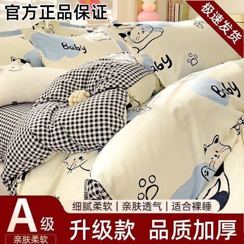 A类100%纯新疆加厚斜纹亲肤棉四件套磨毛床单被套卡通4三件套春季