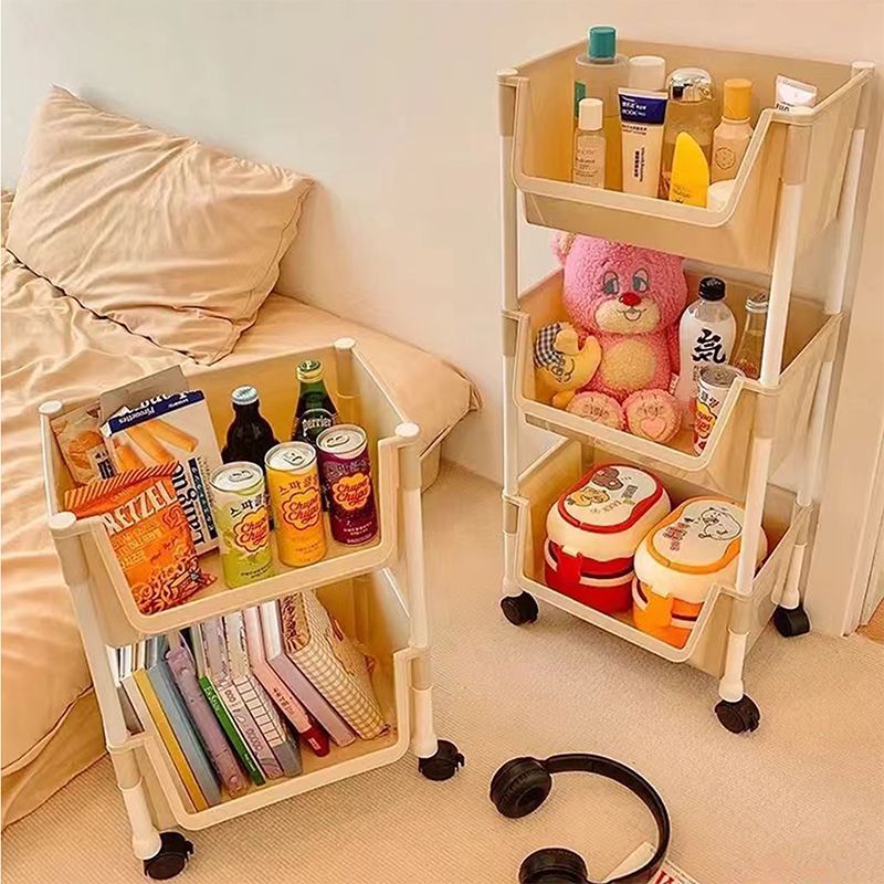 简易书架置物架落地带轮可移动小推车办公桌下书桌边收纳卧室书柜