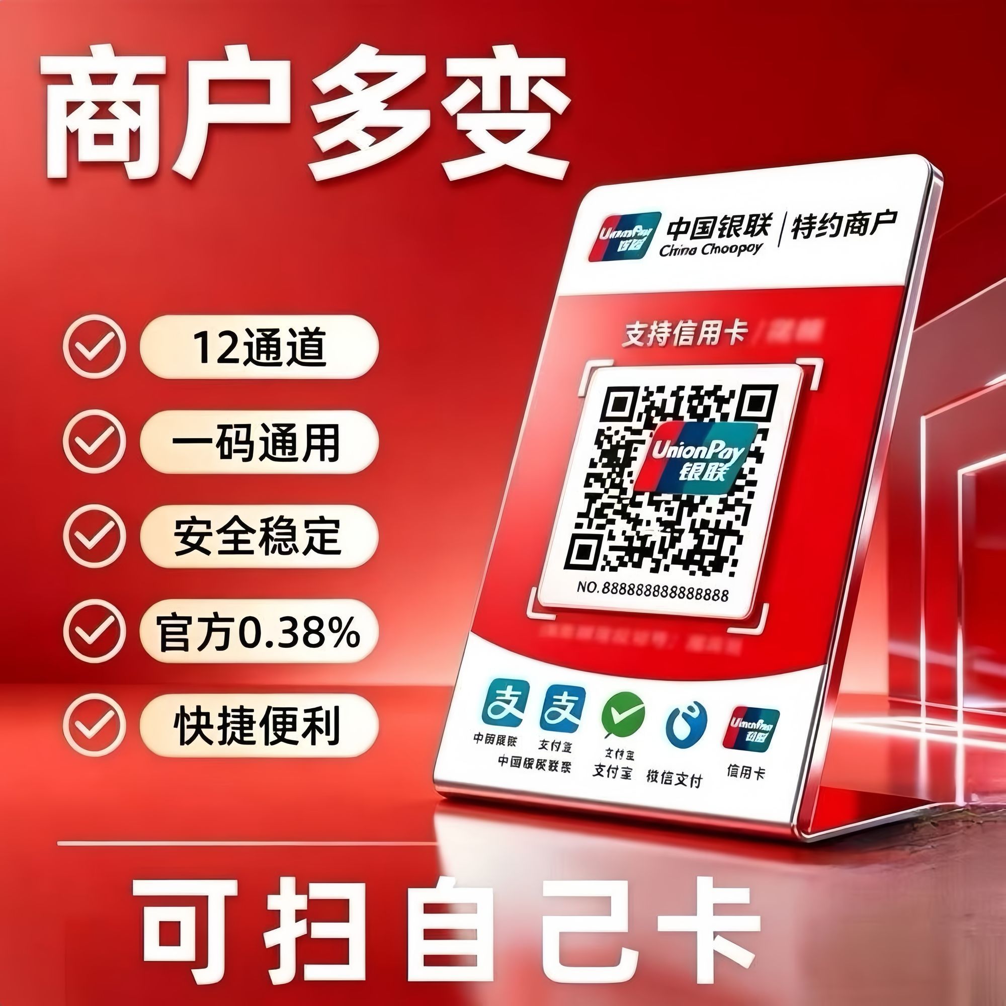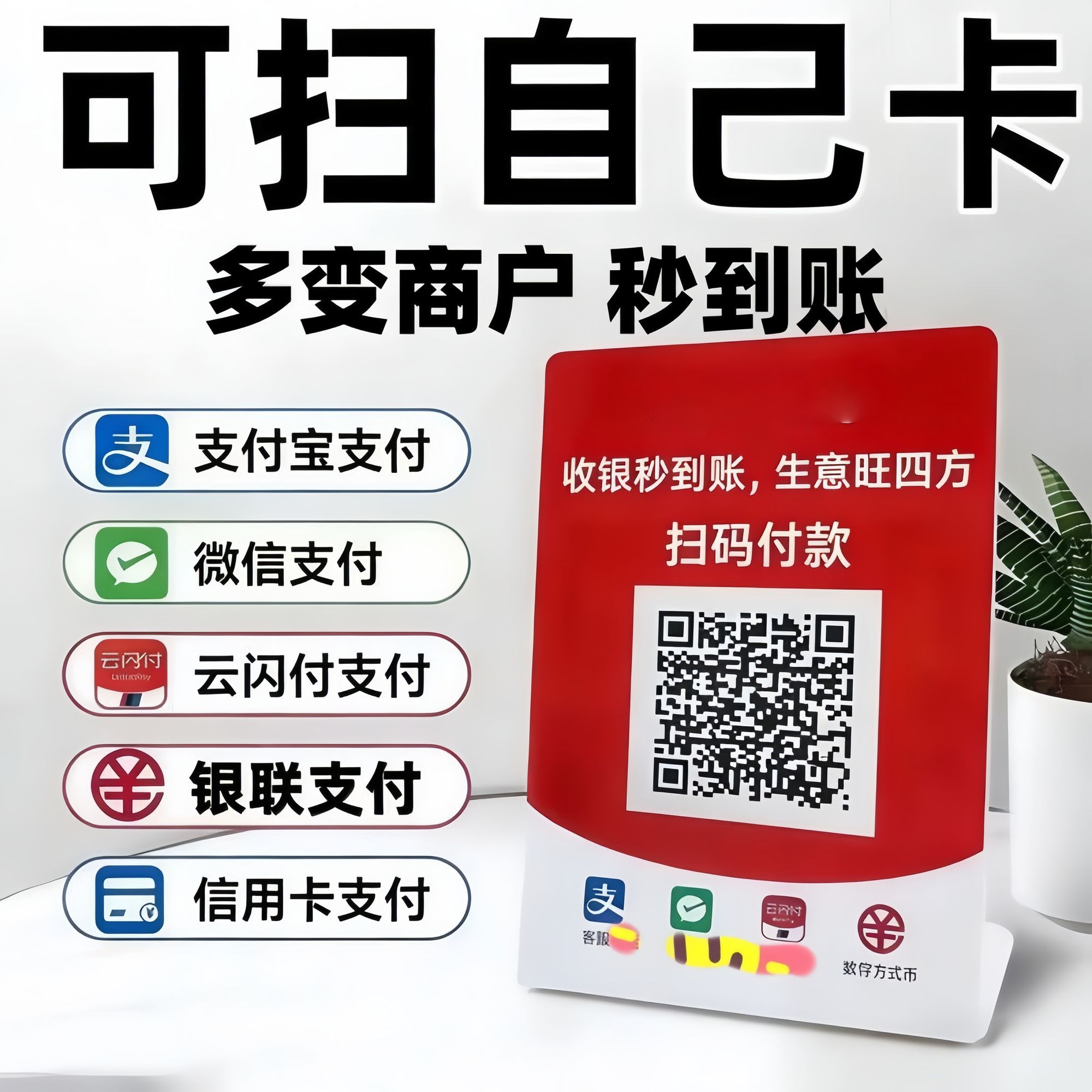 可扫自己卡变商户码牌二维码塑料牌收款码牌扫码多通道吊牌挂牌