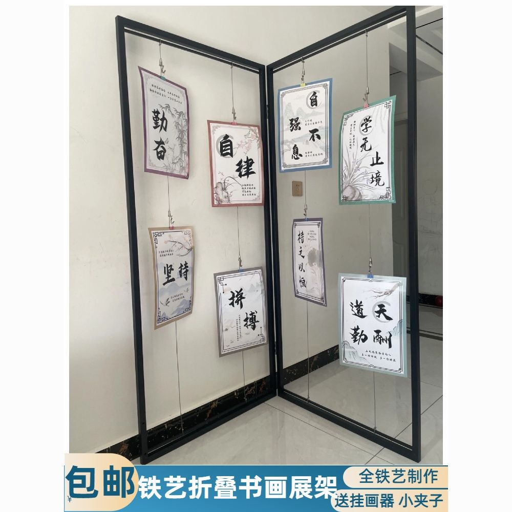 挂画架幼儿园书法作品屏风书画展架美术字画摄影海报宣传铁艺架子