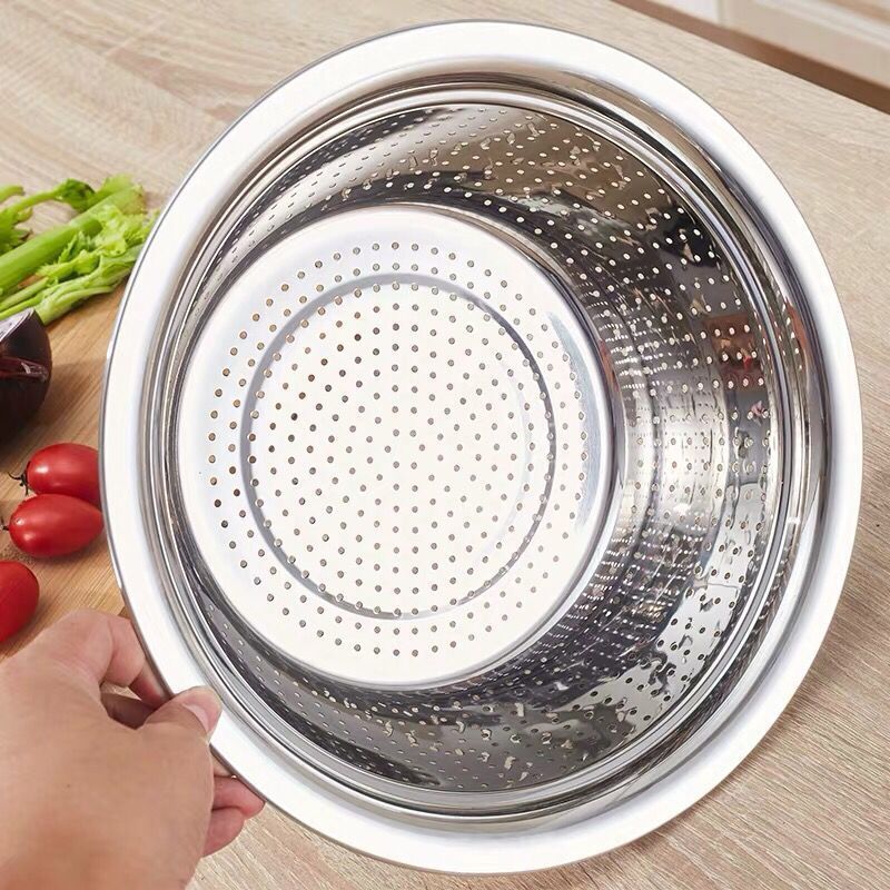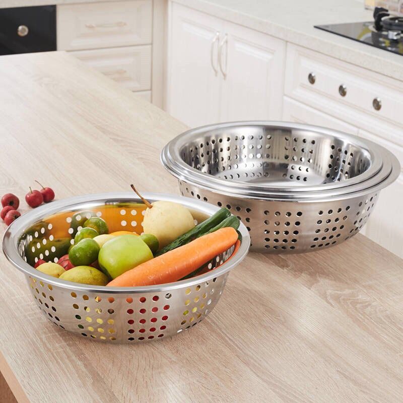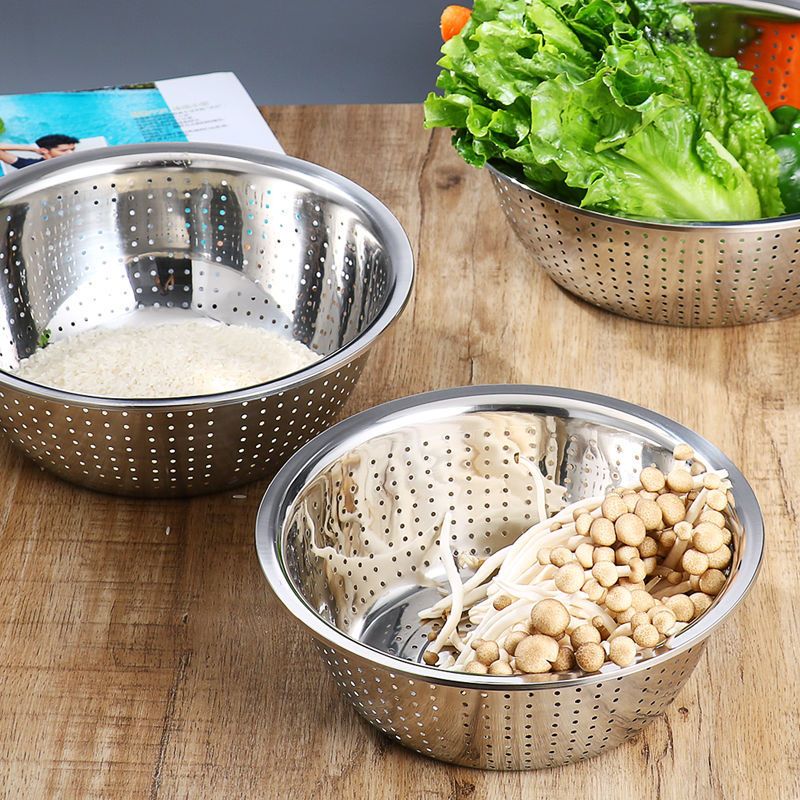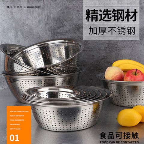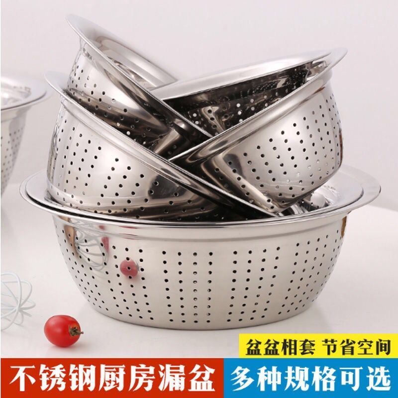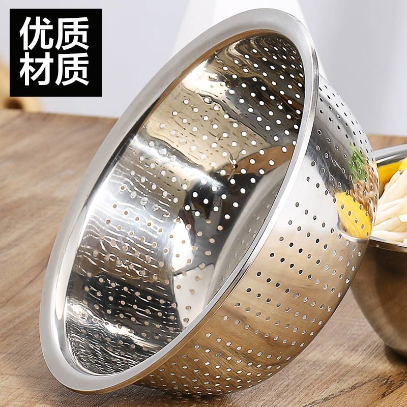 加厚小孔大孔不锈钢漏盆洗菜盆淘米盆洗菜篮沥水盆多用厨房家用盆