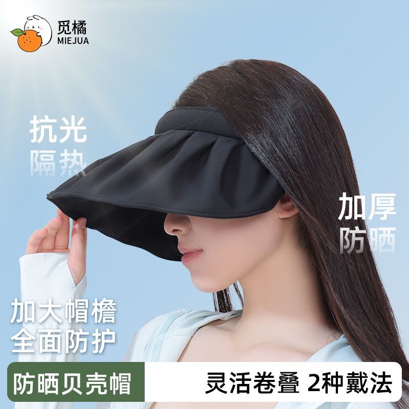 觅橘MIEJUA贝壳帽防晒空顶帽两用发箍夏季出行户外可折叠女遮阳帽