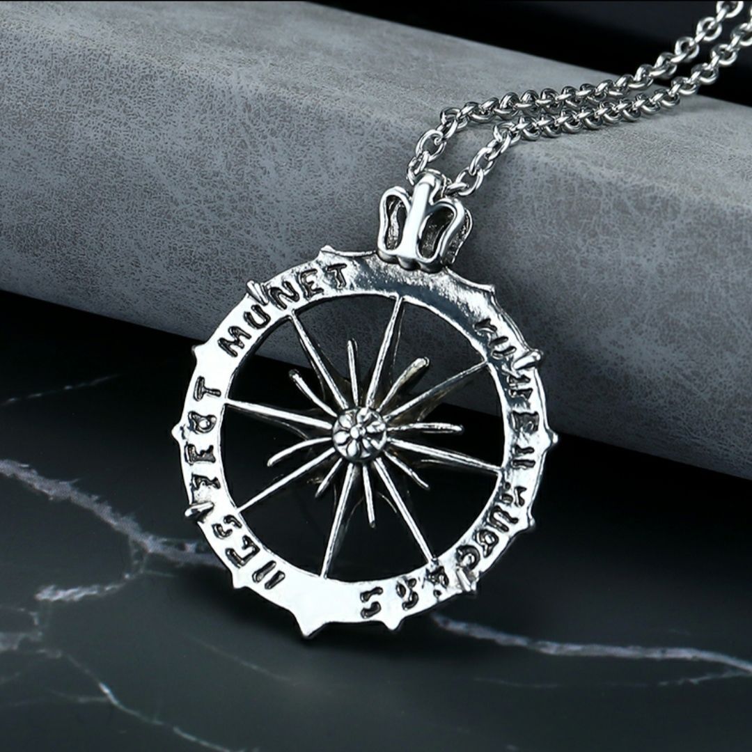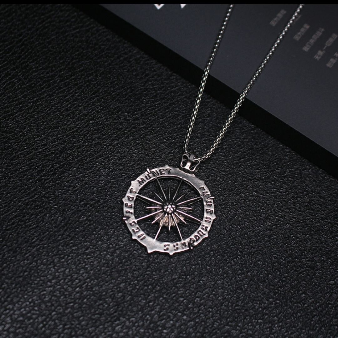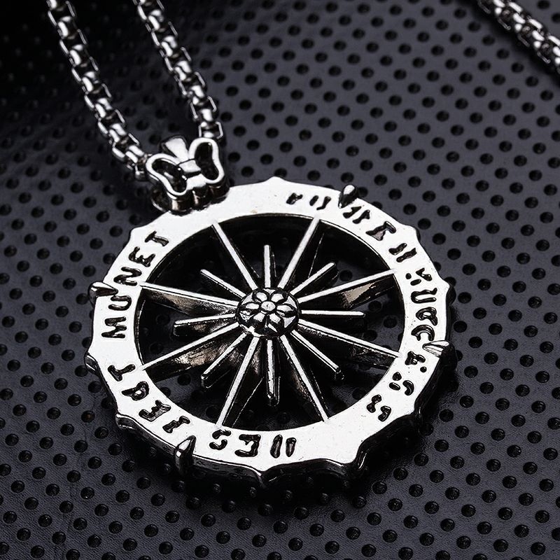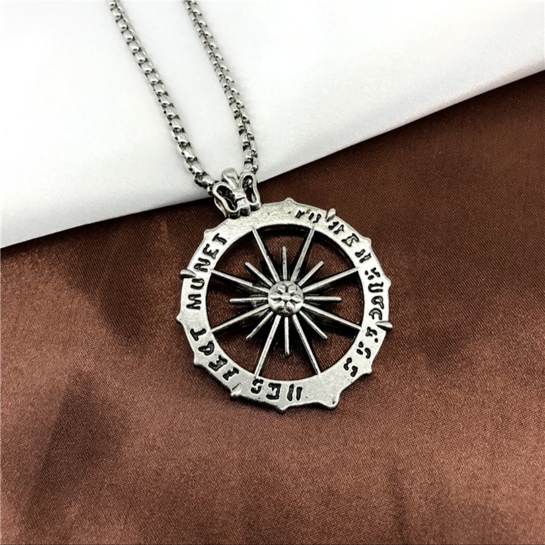 圆牌太阳花项链帅气个性项链男嘻哈毛衣链钛钢不掉色永久百搭项链