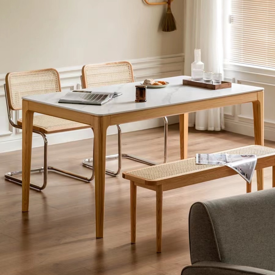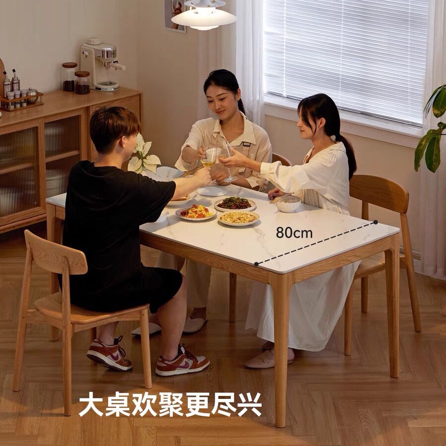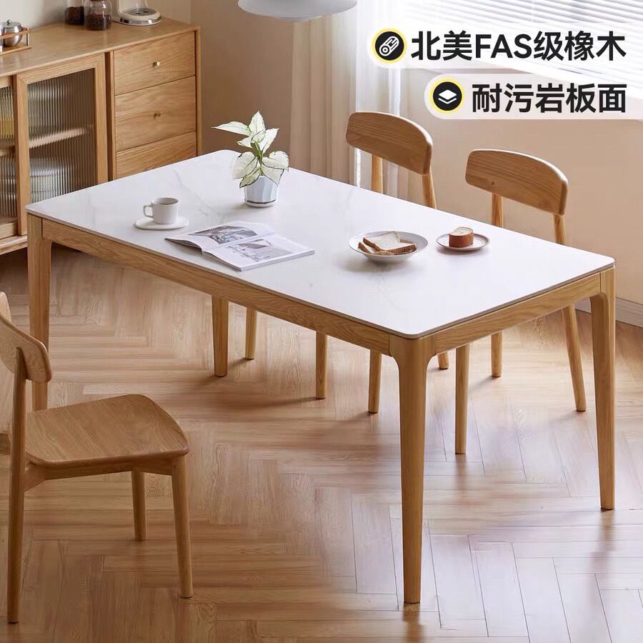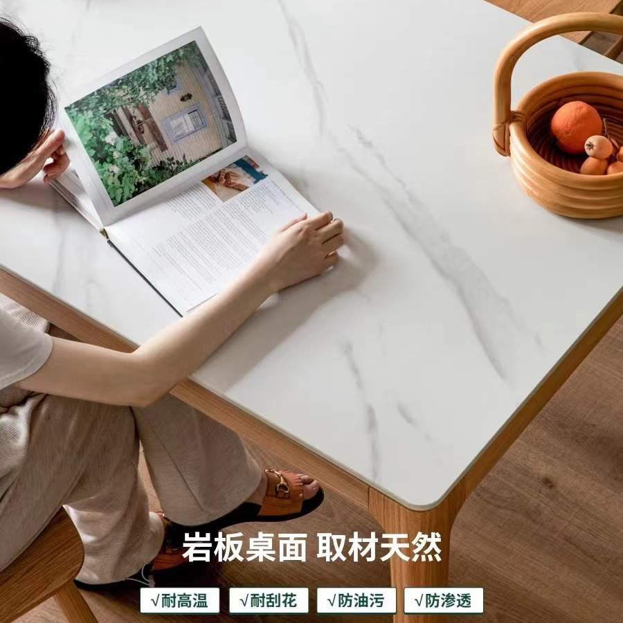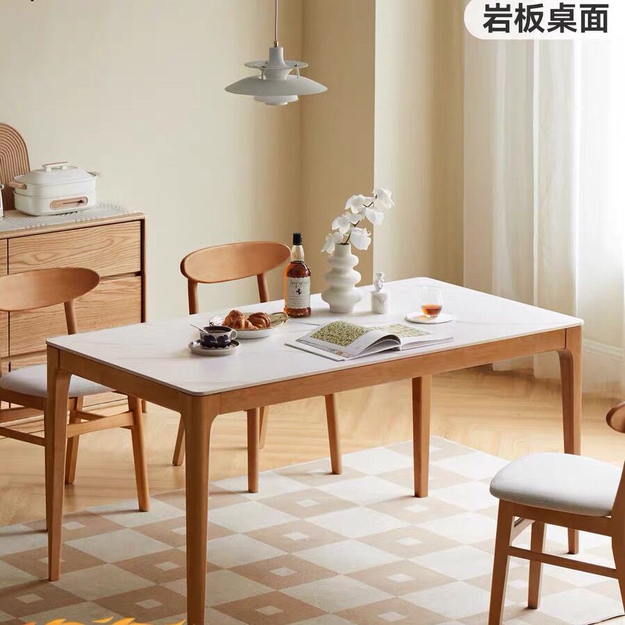 樱桃木纯实木橡木岩板桌简约现代饭桌长方形吃饭桌子北欧日式餐桌