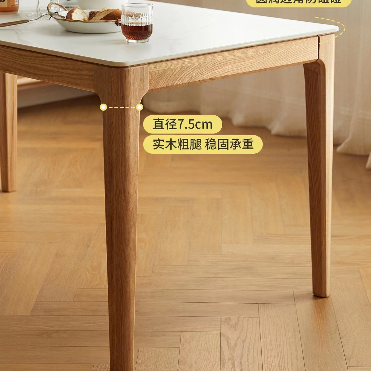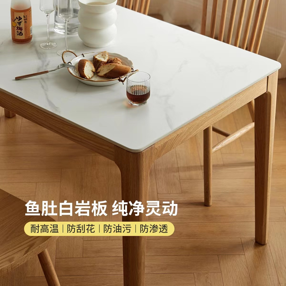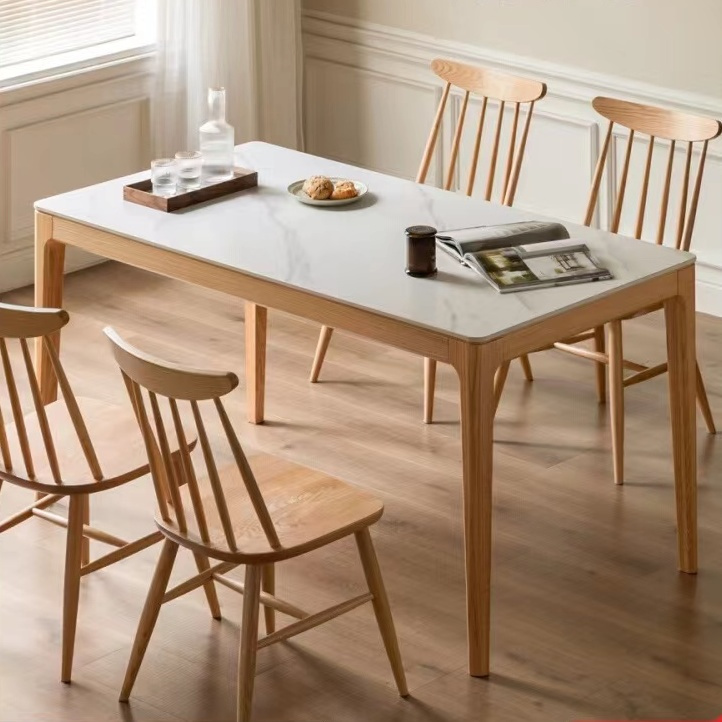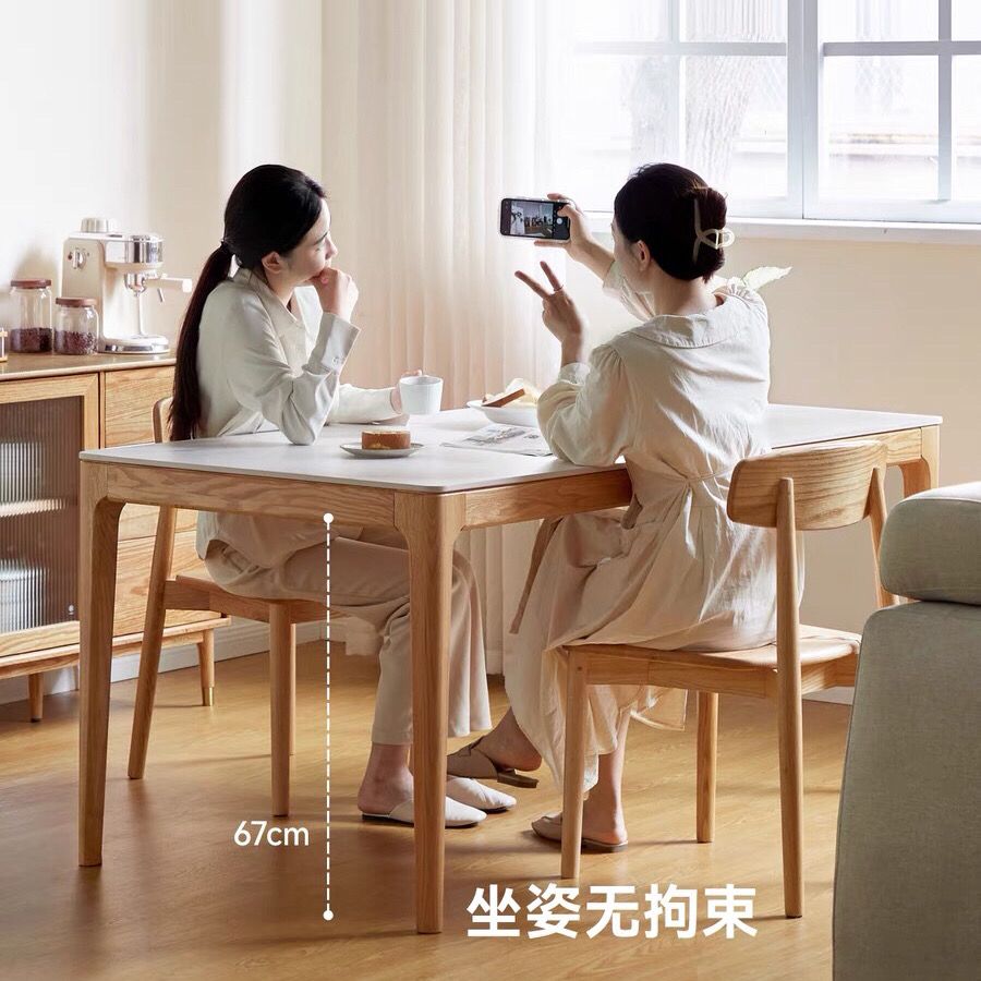 樱桃木纯实木橡木岩板桌简约现代饭桌长方形吃饭桌子北欧日式餐桌