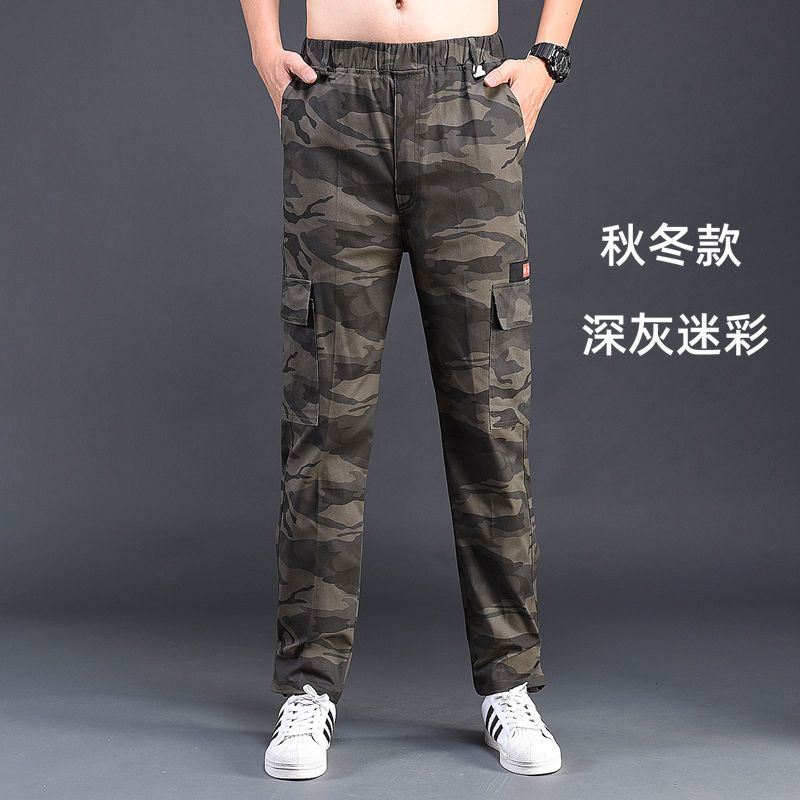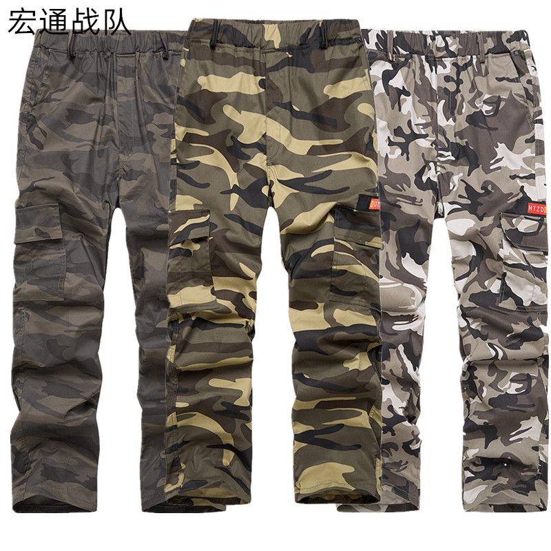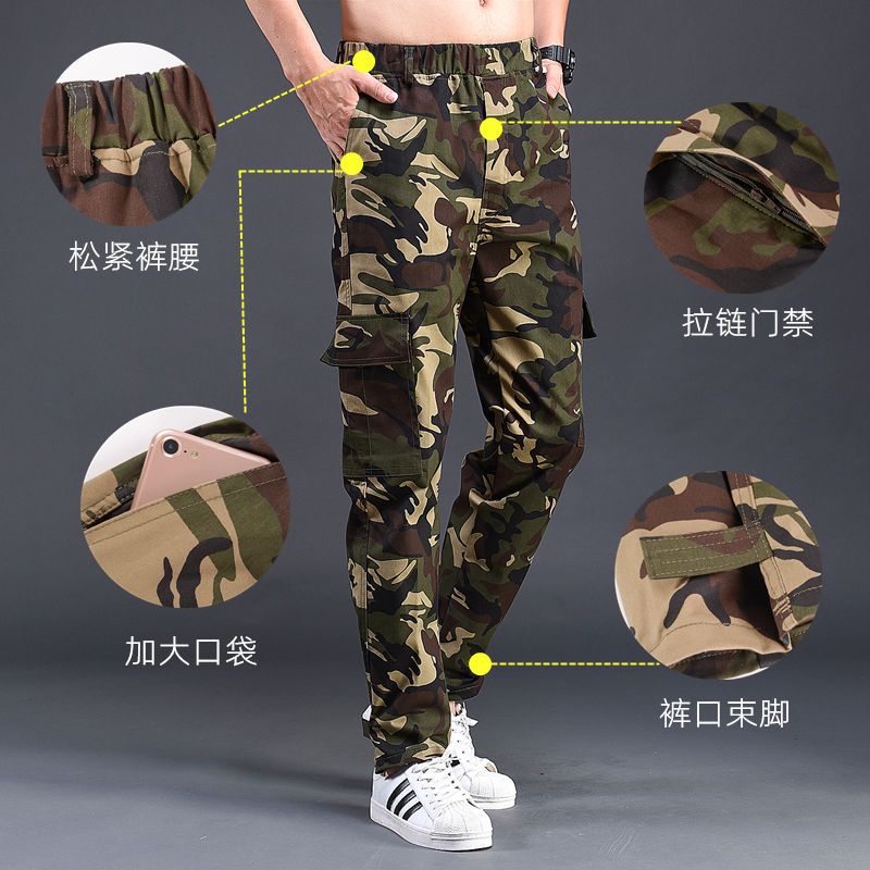 迷彩裤男宽松耐磨夏季薄款弹力松紧腰工装裤透气工人劳保工作服